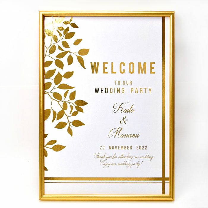 画像拡大 金箔×ウェルカムボード「リーフ」 (0) 商品番号 WEF-GLD-LF 販売価格 ¥ 12,100 税込 [ 110 ポイント進呈 ] 新郎様のお名前(例 Tetsuya)(必須) ※ : / ~ などの半角記号は使用不可 新婦様のお名前(例 Kyoko)(必須) ※ : / ~ などの半角記号は使用不可 挙式日(例 20XX.11.22)(必須) ※ : / ~ などの半角記号は使用不可 お気に入り登録 1 2 3 4 5 6 7 8 9 10+ カートに入れる 納期 3営業日で発送 ※ただし、お支払いが銀行振込の場合はご入金確認後の手配となります 15,000円以上のお買い物で送料無料未満の場合の送料800円~地域ごとに異なります。こちらをご覧くださいませ 商品についてのお問い合わせ 金箔のウェルカムボード「リーフ」/結婚式、パーティー キラリと光るゴールドの輝き。高級感あふれる金箔のウェルカムボードでおしゃれにお出迎えを。3営業日で届くのもウレシイ♡ 上品おしゃれな金箔の輝き おしゃれなリーフ柄のデザインを上品な金箔でプリント。フレームもゴールドで金箔デザインをひきたてます。 ナチュラルとゴージャスの絶妙なバランス。金箔の輝きで、結婚式にふさわしい華やかさを上品に演出します。 時間がなくても大丈夫♡ 通常、名入れアイテムは納期が2週間くらい。でもそれじゃ間に合わない!そんな時もこのウェルカムボードならオドロキのスピード出荷。3営業日で出荷いたします。大切な結婚式にも間に合います。 おしゃれに飾れるフレーム入り 飾りやすいフレーム入り。 シンプルでおしゃれなゴールドフレームが全体を品よくまとめています。 挙式後は新居に飾ってインテリアのおしゃれなアクセントにも♡ 〈即日出荷ウェルカムボード〉もCHECK! お届けの内容 フレーム入りウェルカムボード サイズ 内寸:420mm×297mm重量:約1250g 納期 3営業日で出荷 ※ただし、お支払いが銀行振込の場合はご入金確認後の手配となります お支払方法 名入れ商品につき「代金引換」はお選びいただけません 名入れについて 挙式日、新郎新婦名(ローマ字)お入れします カート部分にご記載ください(入力された内容がそのまま印刷されます) → 名入れについて(必ずお読みください) ご注文に際して ※当日会場に飾るイーゼルなどはご用意ください ※名入れ商品につき、ご注文後のキャンセルはお受けできません こちらもいかがですか? もっといろいろ比べたい! ウェルカムボード全部見る 贈って喜ばれる♡ 両親プレゼント カートに入れるボタンにジャンプする レビューを書く