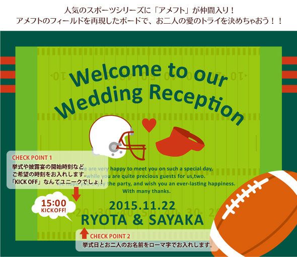 挙式日&おふたりのお名前(ローマ字)入り。さらに!KICK OFF(開始)時刻も入ってます♪