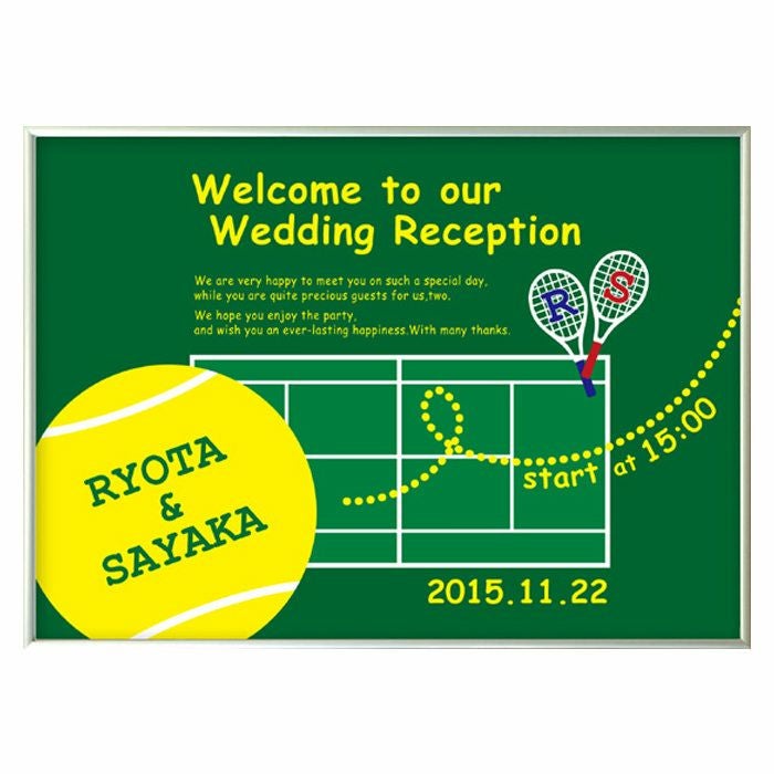 画像拡大 テニスウェルカムボード(グリーン)[A2サイズアルミフレーム] 他商品とは同時購入不可 (0) 商品番号 WES-Tennis-AfG 販売価格 ¥ 12,650 税込 [ 115 ポイント進呈 ] 開始時刻(必須) 選択してください 9時00分 9時30分 10時00分 10時30分 11時00分 11時30分 12時00分 12時30分 13時00分 13時30分 14時00分 14時30分 15時00分 15時30分 16時00分 16時30分 17時00分 17時30分 18時00分 18時30分 19時00分 19時30分 20時00分 20時30分 21時00分 その他(→通信欄にご記入くださいませ) 新郎様のお名前(例 Tetsuya)(必須) ※ : / ~ などの半角記号は使用不可 新婦様のお名前(例 Kyoko)(必須) ※ : / ~ などの半角記号は使用不可 挙式日(例 20XX.11.22)(必須) ※ : / ~ などの半角記号は使用不可 在庫数 7 お気に入り登録 1 2 3 4 5 6 7 8 9 10+ カートに入れる 15,000円以上のお買い物で送料無料未満の場合の送料800円~地域ごとに異なります。こちらをご覧くださいませ 商品についてのお問い合わせ 特大A2アルミフレーム テニス(グリーン) ビッグサイズで迫力満点!テニス好きな人のためのウェルカムボードフレームはアルミ製(シルバー)前面は透明フィルムなので軽量! 壁かけ使用にも安心です 挙式日&おふたりのお名前(ローマ字)入り。さらに!Start(開始)時刻も入ってます♪ サイズ 600×425mm/シルバー(アルミ製) お届けまでの日数 2週間以内に発送予定(土日祝除く) ただしお支払い方法が銀行振込の場合、ご入金確認後の出荷となります ご注文に際して 挙式日、お名前については、ご注文画面の注文備考欄にご記入ください⇒ 名入れについて(必ずお読みください)※入力された内容がそのまま印刷されます※名入れ商品につき、ご注文後のキャンセルはお受けできません お支払い方法 名入れ商品につき「代金引換」はお選びいただけません レビューを書く