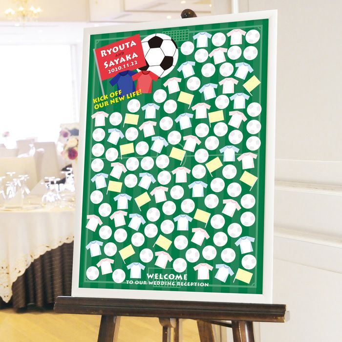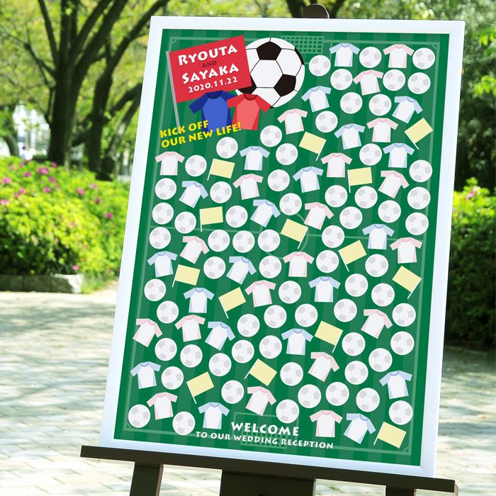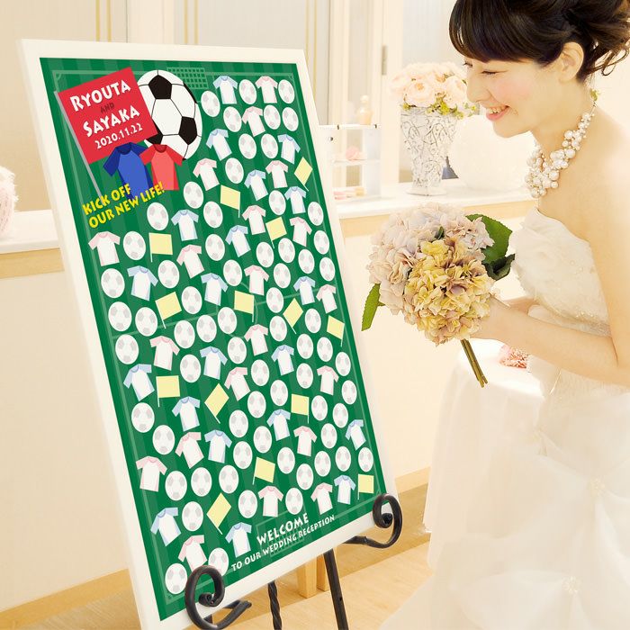 画像拡大 「サッカー(120名様用)B2サイズ」寄せ書きメッセージボード 他商品とは同時購入不可 (0) 商品番号 YM-soccer 定価 ¥ 17,600 のところ 販売価格 ¥ 14,080 税込 [ 128 ポイント進呈 ] 新仕様のフレームでお届けします 新郎様のお名前(例 Tetsuya)(必須) ※ : / ~ などの半角記号は使用不可 新婦様のお名前(例 Kyoko)(必須) ※ : / ~ などの半角記号は使用不可 挙式日(例 20XX.11.22)(必須) ※ : / ~ などの半角記号は使用不可 在庫数 5 お気に入り登録 1 2 3 4 5 6 7 8 9 10+ カートに入れる 15,000円以上のお買い物で送料無料未満の場合の送料800円~地域ごとに異なります。こちらをご覧くださいませ 商品についてのお問い合わせ 寄せ書きメッセージボード(120名様用)B2サイズ 「サッカー」 結婚式・2次会で大活躍の演出、メッセージボード。受付での待ち時間に、メッセージを書いてもらいましょう!ゲストも参加できて、盛り上がること間違いなし!いただいた温かいメッセージは一生の宝物。 謝恩会・卒業記念・退職記念に♪ 一緒に卒業するみんなのメッセージを集めて恩師にプレゼントしたり退職する仲間に職場の皆からのメッセージを集めて、生涯心に残る記念品を贈ってみては? 人数変更オプション(~120名様まで)はこちらから お届けの内容 ホワイトアルミフレーム(メッセージ記入用デザインシート1枚付)×1個 透明シート付き ※メッセージは120名まで対応 サイズ B2サイズ(515mm×728mm) 重量 約1170g ご注意ください 納期 10営業日(土日祝のぞく)※ただし、振込の場合は入金確認後の手配となります お支払い方法 名入れ商品につき「代金引換」はお選びいただけません その他 ボードとデザインペーパーの間に透明カバーが入っていますので メッセージを書いた後、透明カバーをかぶせて、フレームにセットし直して頂けば、記念の品として飾って楽しめます。 関連商品の ご案内 人数変更オプション 120名様まででご希望の人数でお作りします サッカー 70名様用(A2サイズ) レビューを書く