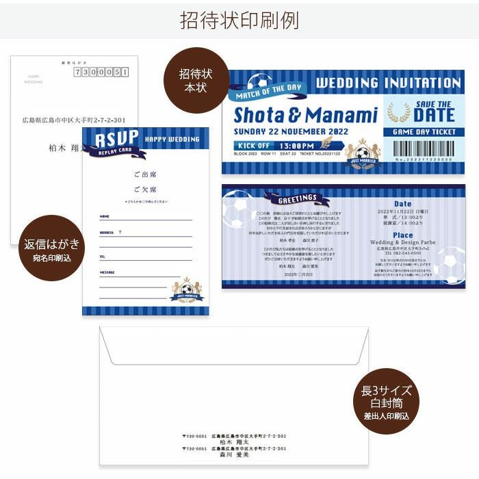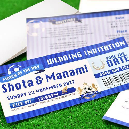 画像拡大 入力印刷付き サッカーファンのためのこだわり招待状 「サッカー観戦チケット風」結婚式招待状10部~(入力・印刷込) 5.00 (1) 商品番号 od-i-fbticket 販売価格 ¥ 11,000 税込 〜 販売価格 ¥ 税込 [ 100 ポイント進呈 ] 〜 [ ポイント進呈 ] 出荷の目安 ご注文後すぐ素材を提出いただいた場合 通常 出荷予定 特急対応(有料) 出荷予定 +地域別の到着目安はこちら +商品制作にデータのご提出が必要な商品ですご注文からお届けまでの流れ 送料 商品合計 ¥15,000円以上送料無料(北海道、沖縄、一部地域除く) +地域別の送料はこちら 項目を指定してカートに入れる 商品についてのお問い合わせ あわせて注文できるオプション 予備用の封筒を追加 個別に案内付箋セット ※事前確認・校正は【LINE】でも対応可能です。《校正専用LINE友だち登録》はこちらから。 ご購入後1営業日以内に届く承りメールでもご案内します。 宛名印刷(筆耕)(必須) 選択してください 希望しない(+¥0 税込) 希望する(~10部まで)(+¥1,650 税込) 希望する(11部~20部まで)(+¥3,300 税込) 希望する(21部~30部まで)(+¥5,500 税込) 希望する(31部~40部まで)(+¥7,700 税込) 希望する(41部~50部まで)(+¥9,900 税込) 希望する(51部~60部まで)(+¥12,100 税込) 希望する(61部~70部まで)(+¥14,300 税込) 希望する(71部~80部まで)(+¥16,500 税込) チケットホルダーお届けの状態(必須) チケットホルダーにチケット風中紙をセットするorしないが選べます。 選択してください セット希望しない セット希望する(+¥2,200 税込) 納期特急オプション(必須) 選択してください 希望しない→納期10営業日(+¥0 税込) 希望する→納期5営業日(+¥3,300 税込) 招待状部数 10部 ¥ 11,000 税込 20部 ¥ 11,000 税込 30部(1部@450円) ¥ 14,850 税込 40部(1部@450円) ¥ 19,800 税込 50部(1部@450円) ¥ 24,750 税込 60部(1部@450円) ¥ 29,700 税込 70部(1部@450円) ¥ 34,650 税込 80部(1部@450円) ¥ 39,600 税込 お気に入り登録 1 2 3 4 5 6 7 8 9 10+ カートに入れる 閉じる × これと似た商品を見る サッカー観戦チケット風招待状(入力印刷込)/結婚式招待状 同じデザインの席次表を見る 同じデザインの席札を見る サッカーファンにぴったり!二人らしさを演出するサッカーの観戦チケットみたいな招待状の登場です。入力から印刷まで全部おまかせがうれしい完成品オーダー招待状です。 結婚式が楽しみになる♡チケット風招待状 まるで観戦チケットみたい!ディティールにまでこめられた遊びゴコロにゲストも思わずにっこり!結婚式に出席するのが楽しみになりそうな招待状です♡ プレミアムなチケットを開く瞬間のように 招待状はチケットホルダーにセットされています。ホルダーはシルバーの箔押しをほどこして高級感がただようこだわりの仕様。開くとサプライズが飛び出すわくわく感たっぷりの招待状です。 チケットホルダーのお届け方法は2パターン。時間がなく、いそがしい人にはチケットホルダーにチケット風中紙をセットした状態の完全完成品でお届け。少しでもコストを抑えたいお二人にはセットしていない状態でお届けします。ご自身でセットして節約することも可能! すみずみにまでこだわりのクオリティ おしゃれなチケット風デザインには、おふたりのお名前と挙式日入り。さらに”KICK OFF”タイムとして開始時刻も!シートナンバーやバーコードのところもひそかに挙式日が入っていたりと、おふたりだけの特別感がいっぱいです。 結婚式の招待状だからもちろん、挨拶文や日時・場所のご案内はしっかりと丁寧に。ここにもサッカーボールがそっとあしらわれていて、すみずみにまでこだわりが。 返信はがきもこんなにおしゃれ!サッカーファンにはたまらない、サッカー愛あふれるデザインの招待状です。 カートに入れるボタンにジャンプする オーダーならではの安心感。すべてプロにお任せください 入力から印刷まですべてプロにおまかせ。ハイクオリティな完成品オーダーの招待状です。 本状や返信はがきもサッカーをテーマにしたおしゃれなデザイン。返信はがきの宛名や封筒の差出人も印刷込。さらに封シールも付く充実の内容で、結婚準備もスムーズに。 カートに入れるボタンにジャンプする オリジナルカスタマイズも可能! 好きなチームのカラーやお二人の結婚式のテーマにあわせて、カラー変更をすることも可能です。(別途オプション料金+5,000円~)イメージするチームの名前を伝えたり、プライベートなチームでもユニフォームのお写真などを送付してイメージ通りのカスタマイズをオーダーすることも可能です。 カラー変更、もっとくわしく見る! ご注文からお届けまで まずはショッピングカートよりご注文を完了してください。その後、専用フォームより原稿のご提出をお願いいたします。 原稿アップロードフォームはこちら そこが知りたい!オーダー招待状よくある質問 こんな時どうすればいいの?こんなコトできる?オーダー招待状のよくある質問はこちらから。気になるギモンをご注文前に解決! よくある質問を見る 【必見】観戦チケット
