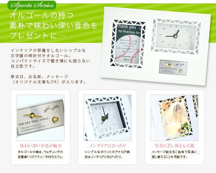 画像拡大 野球好きにおすすめ! サンクスオルゴール(クロック)「野球」/両親へのプレゼント (0) 商品番号 MB-O-cbasecall 販売価格 ¥ 6,380 税込 (1個あたりの価格です) [ 58 ポイント進呈 ] 出荷の目安 通常 出荷予定 特急対応(有料) 出荷予定 +地域別の到着目安はこちら +商品制作にデータのご提出が必要な商品ですご注文からお届けまでの流れ 送料 商品合計 ¥15,000円以上送料無料(北海道、沖縄、一部地域除く) +地域別の送料はこちら 項目を指定してカートに入れる 商品についてのお問い合わせ 文章タイプ(必須) 選択してください A B C D(オリジナル文章→通信欄にご記入ください) 通信欄はカートに入れた後、ご注文手続き画面の最後のページにあります。 特急オプション(必須) 選択してください 希望しない→納期7営業日(+¥0 税込) 希望する→納期4営業日(+¥2,200 税込) ラッピング(白袋花柄タグ)(必須) 選択してください 希望しない ラッピング希望する(+¥275 税込) ラッピング+紙袋(大)希望する(+¥660 税込) お名前(例 良太)(必須) ※ : / ~ などの半角記号は使用不可 挙式日(例 20XX.11.22)(必須) ※ : / ~ などの半角記号は使用不可 お気に入り登録 1 2 3 4 5 6 7 8 9 10+ カートに入れる 閉じる × これと似た商品を見る 【両親へのプレゼント】サンクスオルゴール(時計付き)野球 結婚式の贈呈シーンで渡す両親プレゼントに、インテリアにもぴったりのクロック付きオルゴールはいかが?オルゴールの音色が聞く人の心を温め、挙式後も当日の思い出に浸るひとときを演出します。 メッセージの文章タイプ(定型文またはオリジナル文) A 今日まで私を大切に育ててくれて本当にありがとう 二人のような素敵な夫婦となるようにがんばります これからも見守っていてください B 今日のこのすばらしい日を迎えることができたのも二人のおかげです どうぞいつまでも健康でいてください 本当にありがとう C 皆様に感謝の気持ちを忘れずに 今後も二人で力をあわせて幸せな家庭を築きます そして、一番のありがとうを二人に… D オリジナル文章(70文字以内) ※ご注文画面の通信欄にご記入下さい(複数ご注文の場合は、文章のあとに差出人名もご記入下さい) ※オリジナル文章の句読点はデザインによりスペース等にさせていただく場合もございます やさしいメロディが織りなす しあわせのとき ねじをまいてスイッチをいれると流れてくるやさしいメロディ。曲は結婚式にぴったりの木村カエラの「バタフライ」のワンフレーズ(約15秒分)をリピート。以下ボタンよりご視聴いただけます。 申し訳ございません。ご利用のブラウザでの再生には対応していません。 その他の曲をご希望の場合はオプション(有料)で変更することもできます。「オルゴール曲変更オプション」をあわせてお申し込みください。対応可能な曲は下記オプションページからご確認くださいませ。 オルゴール曲変更オプションはこちら 式に間に合わない!そんな方はこちら 挙式に間に合わない…そんな方もご安心ください。ご注文時に特急オプション「希望する」をお選びの上、ご注文いただくとスピード対応いたします。※別途特急オプション料金が加算されます。 お届けの内容 クロック付きオルゴール(自立型) オルゴール曲:バタフライ/木村カエラ(ワンフレーズ約15秒のリピート) サイズ 180×265×60mm 材質 ABS樹脂 納期 7営業日(土日祝のぞく) 特急オプション「希望する」の場合は4営業日(土日祝のぞく) ※ただし、お支払いが銀行振込の場合はご入金確認後の手配となります ご注文に際して 挙式日、お名前(差出人)をお入れしますカート部分にご記載ください(入力された内容がそのまま印刷されます) お支払い方法 名入れ商品につき「代金引換」はお選びいただけません その他 ご自身でお写真を差し替えられる場合は、115×80mmでご用意ください 関連商品のご案内 文字レイアウトを 校正できます オルゴール曲を 変更できます こちらもいかがですか? もっと比べたい! 両親プレゼントぜんぶ見る 可愛がってくれた 祖父母に贈る記念ギフト レビューを書く