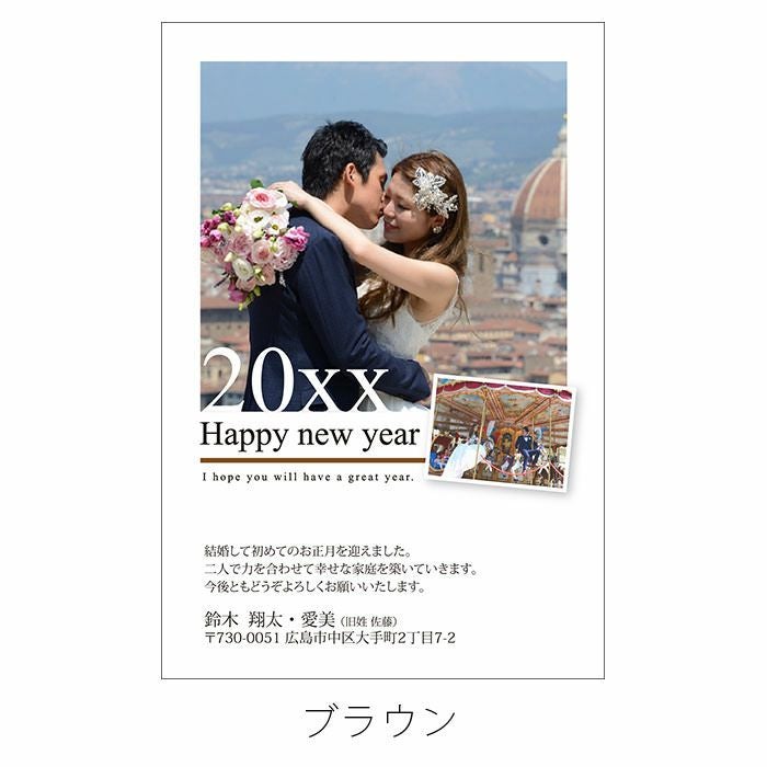 画像拡大 「結婚報告年賀はがき」FN-03(30枚)/お年玉付年賀はがき (0) 商品番号 FN-03 販売価格 ¥ 7,788 税込 [ 71 ポイント進呈 ] 基本代+印刷代+年賀ハガキ代含む カラー(必須) 選択してください ピンク ブルー ブラウン ブラック 校正(お客様による印刷前データ確認)(必須) 選択してください 校正希望しない(納期短縮) 校正希望する データ送付(必須) 選択してください 必要な項目は専用フォームからご送付ください 宛名印刷(必須) 選択してください 宛名印刷なし(納期短縮)(+¥0 税込) 宛名印刷付き(+¥3,300 税込) お気に入り登録 1 2 3 4 5 6 7 8 9 10+ カートに入れる あわせて注文できるオプション 30枚以上の場合こちらの追加ハガキを合わせてご注文ください 15,000円以上のお買い物で送料無料未満の場合の送料800円~地域ごとに異なります。こちらをご覧くださいませ 商品についてのお問い合わせ 結婚報告年賀はがき「FN-03」30枚パック(基本料金込み) 結婚報告も兼ねた幸せ運ぶ年賀状。お写真と必要事項を送信するだけ、デザイナーが最高の一枚に仕上げます。 30枚以上のご注文は 追加用はがきをプラス こちらのページは”30枚パック(基本料金込み)”のご注文ページとなります。30枚以上お申込みの場合は「追加用はがき」を必要枚数分あわせてカートに入れてご注文くださいませ。 例:80枚注文する場合 このページでカートに入れたあと、続けて「追加用はがき」を50枚カートに入れて一緒にご注文ください。 お写真「2点」お入れします このデザインでご用意いただくお写真は下記となります。美しい仕上がりのために、枠の向きにあったお写真をご用意ください。 ご注文からお届けまでの流れ まずは必要枚数をご注文ください。ご注文後、お早めに専用フォームよりお写真と必要事項をご送信ください。 PCでもスマホでも送信OK!専用アップロードフォームはこちらから よくある質問 Q:特急でお願いしたい A:校正なし・宛名印刷なしでよろしければ全体納期の約半分の日程(約3営業日)でお届けいたします。(追加料金なし) Q:宛名印刷もお願いしたい A:追加料金で承っています。また納期もプラス2日頂戴します。 Q:数が足りなくなった!追加で頼みたい A:すでに印刷開始後やお届け後の追加の場合、再注文用の基本料金1,100円(税込)がかかります。基本料金+追加用はがき(必要枚数分)をご注文くださいませ。 Q:デジタルデーターがないのでプリント写真を使いたい A:お写真をご郵送いただければ対応いたします。ただし通常より納期がかかる恐れがございます。CDなどでお送りいただいても結構です。(郵送先:〒730-0051 広島市中区大手町2丁目7-2 Balcom大手町ビル 3F ファルベ制作部 宛) Q:スマホの写真でも大丈夫? A:はい、大丈夫です。元画像サイズ(大きいサイズ)で圧縮なしでアップロードくださいませ。アプリで加工したお写真やLINEで送った写真はサイズが小さく使用できない場合があります。 Q:年賀状の持ち込みはできる? A:ハガキ代込みの商品となっているため年賀状は基本こちらでご準備させていただきます。 お届けの内容 お年玉付き年賀はがき(印刷仕上げ)30枚 ※本商品は業務用カラーレーザーによるオンデマンド印刷で、はがきに直接印刷します。(はがきはインクジェット紙ではありません) 納期 校正ありの場合…お写真到着後6営業日(土日祝のぞく) 校正なしの場合…お写真到着後3営業日(土日祝のぞく) 宛名印刷ありの場合…上記プラス2営業日(土日祝のぞく) ※ただし、お支払いが銀行振込の場合はご入金確認後の手配となります。 データのご送付について ご注文後お早めにこちらの専用フォームよりお写真と必要事項をお送りください。 専用フォームはこちらから 宛名印刷ありの場合は、宛名用データもお送りください。 ご注文完了後、ファルベからお届けする正式受注メールにてデータの送付方法をご案内させていただきます。メール到着まで(通常1営業日以内にお送りします)少々お待ちください。 宛名データ入力シートダウンロード ※Excel形式のフォーマットをご用意しています。上記よりダウンロードしてご準備ください。データ到着からの納期となりますので、先にデータだけご準備いただいておくとスムーズです。 関連商品のご案内 30枚以上の 追加分はこちらから お届け後の追加 再注文はこちらから こうしたい!を叶える プレミアムカスタマイズ レビューを書く