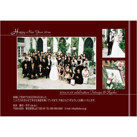 画像拡大 「年賀はがき」 NP-30(ボルドー)(50部)/年賀状 (0) 商品番号 NP-30 定価 ¥ 16,357 のところ 販売価格 ¥ 13,086 税込 [ 119 ポイント進呈 ] 文章タイプ(必須) 選択してください A B C D E(オリジナル文章) 画像送付方法(必須) 選択してください メール添付 郵送 校正(必須) 選択してください 希望する(納期 写真到着後約10日) 希望しない(納期 写真到着後約7日) お客様のページへの画像掲載(必須) 選択してください OK NG 新郎お名前(必須) ※ : / ~ などの半角記号は使用不可 新郎ローマ字 ※ : / ~ などの半角記号は使用不可 新婦お名前(必須) ※ : / ~ などの半角記号は使用不可 新婦ローマ字 ※ : / ~ などの半角記号は使用不可 旧姓(例 新婦 山田)(必須) ※ : / ~ などの半角記号は使用不可 郵便番号(例 730-0051)(必須) ※ : / ~ などの半角記号は使用不可 ご住所(必須) ※ : / ~ などの半角記号は使用不可 TEL(印刷しない場合は記入不要) ※ : / ~ などの半角記号は使用不可 挙式日(例 20XX.11.22)(必須) ※ : / ~ などの半角記号は使用不可 申し訳ございません。在庫がございません。 お気に入り登録 15,000円以上のお買い物で送料無料未満の場合の送料800円~地域ごとに異なります。こちらをご覧くださいませ 商品についてのお問い合わせ 年賀はがき「NP-30(ボルドー)」 ご用意いただく写真 3枚 写真のレイアウトを表示しておりますので枠に合ったお写真をご用意下さい 3カットタイプ a:ヨコ b/c:タテ 仕上がりサイズは約145×97mmとなります。 ■ 文章について文章タイプA~Eの中からお選びください。■ お写真について こちらでお写真について必ずご確認ください。 ■ご注意ください お預かりしたお写真は納品時に返却いたします。 できるだけ光沢写真をご用意ください。(絹目写真は仕上がりが粗くなる場合があります) プリント写真(A4サイズ相当まで)かデジタルデータ(JPEG形式)をご用意ください。(アルバム等大きいものは不可) デジタルデータの場合、小さすぎる画像は印刷時粗くなり品質が落ちる恐れがあります。1枚につき5MB以内くらいでなるべく高解像度の画像をご用意くださいませ。 お写真はご注文後お早め(3日以内)にお送りください。 ご注文者のお名前を必ずご記入の上、ご送付いただきますようお願いいたします。 お写真が数点になる場合はレイアウト図のどのコマに使用されるかご指定の上お送り下さい。(インク等で写真面が汚れないようにお気をつけ下さい) 写真のトリミング(画像の必要な部分を切り出す写真の加工)は全ておまかせとさせていただきます。 納品後の追加注文は「追加版代」と「枚数追加オプション」でのご注文となります 文章タイプ A 皆様に温かく見守られ 新生活をスタートしました。 二人で力を合わせて幸せな家庭を築いていきます。 今後ともよろしくお願いいたします。 B 私たち結婚しました。 まだまだ未熟な二人ですが明るい家庭を築いていきたく思っております。 今後ともご指導のほどよろしくお願いいたします。 C 私たちは○月○日に○○○にて新しい人生をスタートいたしました。 これからもどうぞよろしくお願いいたします。 D 結婚して初めてのお正月を迎えました。 二人で力を合わせて幸せな家庭を築いていきます。 今後ともどうぞよろしくお願いいたします。 E 上記以外のオリジナル文章(70文字以内) ※ご注文画面の通信欄またはメールにご記入下さい お届けの内容 年賀はがき(切手代込み)…50枚 サイズ 仕上がりサイズ 約145×97mm 原稿について ※必須事項※ カート部分の印刷入力内容を忘れずにご記載ください。 校正 校正は一回目まで無料。 それ以降は料金1650円(税込)発生いたします。校正はメールのみの対応となります。 仕上がりをお急ぎの方は「希望しない」をお選び下さい。 納期 校正ありの場合…お写真到着後10日(土日祝除く) 校正なしの場合…お写真到着後1週間(土日祝除く) ※ただしお支払い方法が銀行振込の場合、ご入金確認後の出荷となります。 お支払い方法 名入れ商品につき「代金引換」はお選びいただけません 追加オプション 追加はがき(10枚) ※やっぱり追加で必要になったという場合、 お届け後の追加には追加版代が必要になりますのでご注意ください。 例えば、結婚報告はがきをお買い上げの方で、納品後の追加10部希望の場合、 追加版代+10部分追加はがき印刷代がかかることになります。 その他 お客様のページへの画像掲載にご承諾(OK)していただくと、 ページにはがき画像を掲載させていただきます。 ご提供いただきましたはがきデザインは、お客様のページ以外の使用はいたしません。 イメージ写真として掲載させていただきますので、住所や名前はわからないようにいたします。 レビューを書く