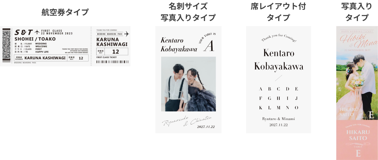 ファルべのエスコートカードは小ロットから対応。写真入り、チケット風、リストバンド型、花束型など、おしゃれなデザイン豊富で二人らしさが叶う!オリジナルデザインもお受けします。LINEで簡単やりとりで安心。