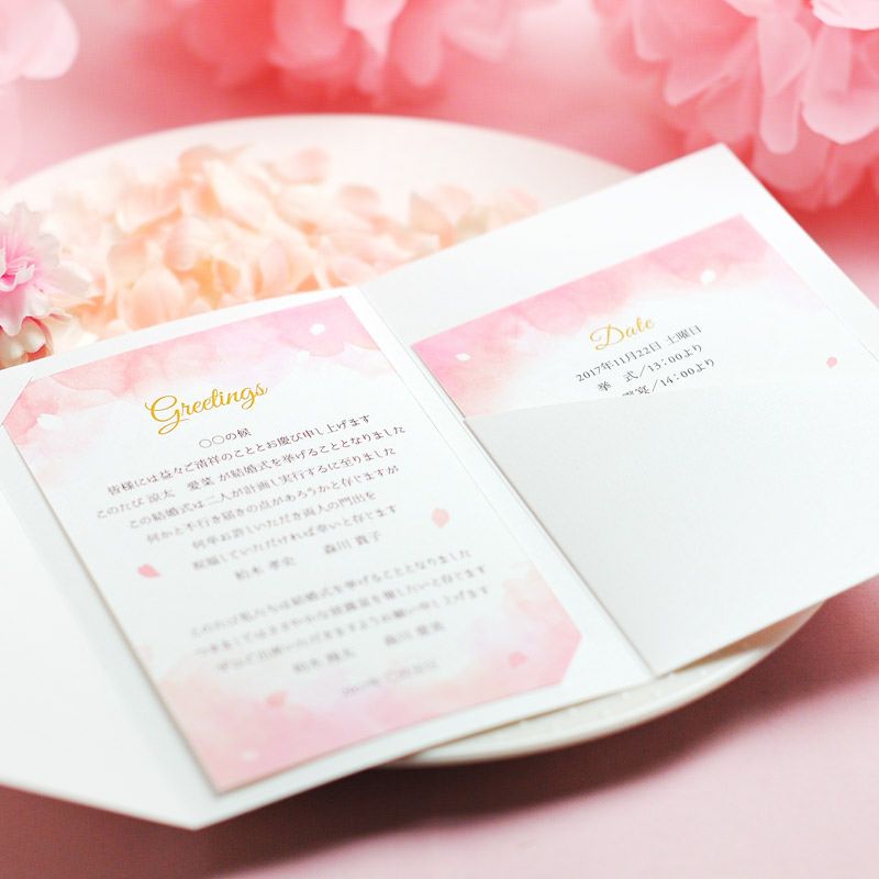 画像拡大 入力印刷付き 「ロッティサクラ」結婚式招待状10部~(入力・印刷込) 5.00 (1) 商品番号 OD-I-Rotti-sakura 販売価格 ¥ 9,900 税込 〜 販売価格 ¥ 税込 [ 90 ポイント進呈 ] 〜 [ ポイント進呈 ] 出荷の目安 ご注文後すぐ素材を提出いただいた場合 通常 出荷予定 特急対応(有料) 出荷予定 +地域別の到着目安はこちら +商品制作にデータのご提出が必要な商品ですご注文からお届けまでの流れ 送料 商品合計 ¥15,000円以上送料無料(北海道、沖縄、一部地域除く) +地域別の送料はこちら 項目を指定してカートに入れる 商品についてのお問い合わせ あわせて注文できるオプション 予備用の封筒を追加 個別に案内付箋セット ※事前確認・校正は【LINE】でも対応可能です。《校正専用LINE友だち登録》はこちらから。 ご購入後1営業日以内に届く承りメールでもご案内します。 宛名印刷(筆耕)(必須) 選択してください 希望しない(+¥0 税込) 希望する(~10部まで)(+¥1,650 税込) 希望する(11部~20部まで)(+¥3,300 税込) 希望する(21部~30部まで)(+¥5,500 税込) 希望する(31部~40部まで)(+¥7,700 税込) 希望する(41部~50部まで)(+¥9,900 税込) 希望する(51部~60部まで)(+¥12,100 税込) 希望する(61部~70部まで)(+¥14,300 税込) 希望する(71部~80部まで)(+¥16,500 税込) 本状と台紙のお届けの状態(必須) 本状と台紙のセットをする/しないをお選びください 選択してください セット希望しない セット希望する(+¥2,200 税込) 納期特急オプション(必須) 選択してください 希望しない→納期10営業日(+¥0 税込) 希望する→納期5営業日(+¥3,300 税込) 招待状部数 10部 ¥ 9,900 税込 20部 ¥ 9,900 税込 30部(1部@385円) ¥ 11,550 税込 40部(1部@385円) ¥ 15,400 税込 50部(1部@385円) ¥ 19,250 税込 60部(1部@385円) ¥ 23,100 税込 70部(1部@385円) ¥ 26,950 税込 80部(1部@385円) ¥ 30,800 税込 お気に入り登録 1 2 3 4 5 6 7 8 9 10+ カートに入れる 閉じる × これと似た商品を見る 結婚式招待状「ロッティサクラ招待状 完成品オーダー」(印刷つき) デザインやディテールにこだわった結婚式の招待状 プロに任せて安心の印刷込み完成品オーダー ご注文からお届けまで まずはショッピングカートよりご注文を完了してください。その後、専用フォームより原稿のご提出をお願いいたします。 原稿アップロードフォームはこちら そこが知りたい!オーダー招待状よくある質問 こんな時どうすればいいの?こんなコトできる?オーダー招待状のよくある質問はこちらから。気になるギモンをご注文前に解決! よくある質問を見る お届けの内容 (1)招待状本状(台紙/中紙…2枚) (2)返信はがき(宛名印刷込) (3)封筒(差出人印刷込)※封筒に宛名印刷および切手は含まれません (4)封シール サイズ 本状台紙:約323mm×160mm(開いた状態で)約115mm×160mm(閉じた状態で)本状中紙:100mm×148mm(挨拶文)/100mm×125mm(日時場所案内) 返信はがき:100×148mm 封筒:120×175mm 納期 原稿到着から10営業日(土日祝のぞく) ※ただし、お支払いが銀行振込の場合はご入金確認後の手配となります。 ※お急ぎの方は、特急オプションをあわせてご注文ください ご注文に際して ご注文は10部より承ります。 レイアウトはお任せいただきます(校正にてご確認頂けます) お支払い 名入れ商品につき「代金引換」はお選びいただけません。 ご注文後の流れ ご注文完了後、お早めに専用フォームより原稿をご送付ください。 ご注文→原稿送付→校正→印刷→商品発送 招待状原稿送付フォーム 封筒宛名印刷(筆耕)オーダーシートDL 一緒に注文できるオプション 中国語、韓国語英語、フランス語表記も 付箋セット親族紹介、挙式時間案内の付箋も 封筒追加オプション 予備用の封筒を追加 こちらもいかがですか? もっといろいろ比べたい!招待状ぜんぶ見る 早めの準備がオススメ両親プレゼント カートに入れるボタンにジャンプする お届けの内容 (1)招待状本状(台紙/中紙…2枚) (2)返信はがき(宛名印刷込) (3)封筒(差出人印刷込)※封筒に宛名印刷および切手は含まれません (4)封シール サイズ 本状台紙:約323mm×160mm(開いた状態で)約115mm×160mm(閉じた状態で)本状中紙:100mm×148mm(挨拶文)/100mm×125mm(日時場所案内) 返信はがき:100×148mm 封筒:120×175mm 納期 原稿到着から10営業日(土日祝のぞく) ※ただし、お支払いが銀行振込の場合はご入金確認後の手配となります。 ※お急ぎの方は、特急オプションをあわせてご注文ください ご注文に際して ご注文は10部より承ります。 レイアウトはお任せいただきます(校正にてご確認頂けます) お支払い 名入れ商品につき「代金引換」はお選びいただけません。 ご注文後の流れ ご注文完了後、お早めに専用フォームより原稿をご送付ください。 ご注文→原稿送付→校正→印刷→商品発送 招待状原稿送付フォーム 封筒宛名印刷(筆耕)オーダーシートDL 一緒に注文できるオプション 中国語、韓国語英語、フランス語表記も 付箋セット親族紹介、挙式時間案内の付箋も 封筒追加オプション 予備用の封筒を追加 こちらもいかがですか? もっといろいろ比べたい!招待状ぜんぶ見る 早めの準備がオススメ両