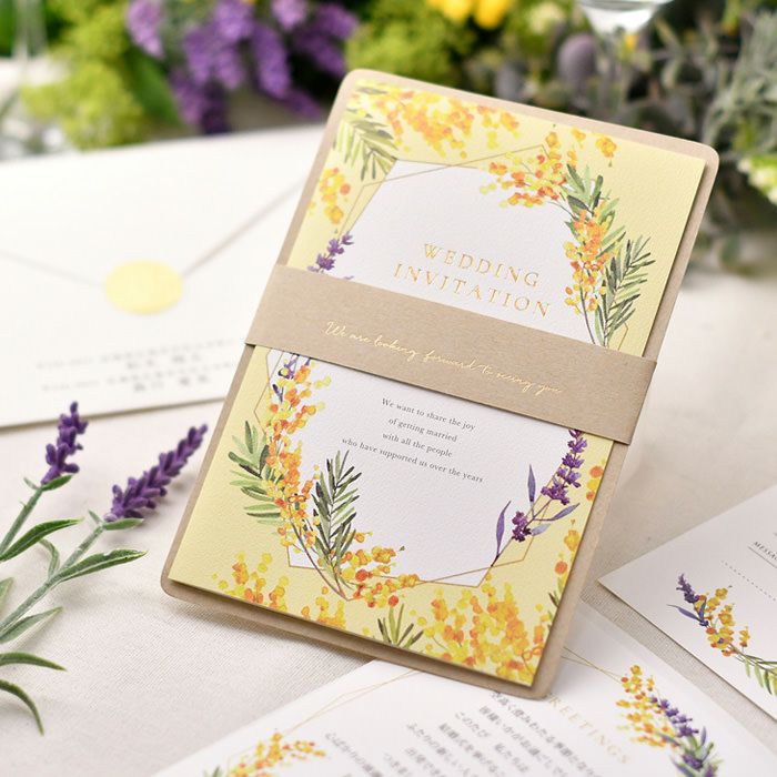 画像拡大 入力印刷付き 「ミモザ・ルフレ」結婚式招待状5部~(入力・印刷込) 4.00 (1) 商品番号 OD-i-reflet 販売価格 ¥ 9,900 税込 〜 販売価格 ¥ 税込 [ 90 ポイント進呈 ] 〜 [ ポイント進呈 ] 出荷の目安 ご注文後すぐ素材を提出いただいた場合 通常 出荷予定 特急対応(有料) 出荷予定 +地域別の到着目安はこちら +商品制作にデータのご提出が必要な商品ですご注文からお届けまでの流れ 送料 商品合計 ¥15,000円以上送料無料(北海道、沖縄、一部地域除く) +地域別の送料はこちら 項目を指定してカートに入れる 商品についてのお問い合わせ あわせて注文できるオプション 予備用の封筒を追加 個別に案内付箋セット ※事前確認・校正は【LINE】でも対応可能です。《校正専用LINE友だち登録》はこちらから。 ご購入後1営業日以内に届く承りメールでもご案内します。 本状と台紙のお届けの状態(必須) 本状と台紙のセットをする/しないをお選びください 選択してください セット希望しない セット希望する(+¥2,200 税込) 宛名印刷(筆耕)(必須) 選択してください 希望しない(+¥0 税込) 希望する(~10部まで)(+¥1,650 税込) 希望する(11部~20部まで)(+¥3,300 税込) 希望する(21部~30部まで)(+¥5,500 税込) 希望する(31部~40部まで)(+¥7,700 税込) 希望する(41部~50部まで)(+¥9,900 税込) 希望する(51部~60部まで)(+¥12,100 税込) 希望する(61部~70部まで)(+¥14,300 税込) 希望する(71部~80部まで)(+¥16,500 税込) 納期特急オプション(必須) 選択してください 希望しない→納期10営業日(+¥0 税込) 希望する→納期5営業日(+¥3,300 税込) 招待状部数 5部 ¥ 9,900 税込 10部 ¥ 9,900 税込 20部 ¥ 11,000 税込 30部(1部@400円) ¥ 13,200 税込 40部(1部@400円) ¥ 17,600 税込 50部(1部@400円) ¥ 22,000 税込 60部(1部@400円) ¥ 26,400 税込 70部(1部@400円) ¥ 30,800 税込 80部(1部@400円) ¥ 35,200 税込 お気に入り登録 1 2 3 4 5 6 7 8 9 10+ カートに入れる 閉じる × これと似た商品を見る 結婚式招待状「ミモザ・ルフレ」完成品オーダー(入力印刷込) 同じデザインの席次表を見る 同じデザインの席札を見る 愛と幸福を呼ぶとされているミモザと、献身的な愛が花言葉のラベンダーのデザインが結婚式にぴったり!パソコンやプリンターを持っていない方も安心なファルベの完成品オーダー招待状です。 オーダーならではの安心感!すべてプロにお任せ この招待状なら入力・印刷・組み立てまで全部おまかせ♡安心とハイクオリティが叶う完成品オーダーです。 ナチュラルウェディングをランクアップ! あたたかみのあるクラフト紙を組み合わせるというひと工夫でナチュラル感と特別感がUP。さらにゴールドの箔押しの文字で上品な高級感もプラス♡ナチュラルウェディングを一層おしゃれに演出できます。 表紙にはおしゃれな英文入り。おしゃれなだけじゃなく、ちゃんと結婚式の招待状にふさわしい意味のある英文があしらわれています。 カートに入れるボタンにジャンプする すみずみまでこだわりたっぷり♡絶品招待状 招待状本状にはデザインカバーを重ねてクラフト紙にセット。同じクラフト紙で帯締めするという凝ったデザイン。表紙が可愛いのはもちろんですが、開いた中もとってもおしゃれ!さらに返信はがきもお揃いのデザインと、すみずみまでこだわりがつまった招待状です。 カートに入れるボタンにジャンプする ご注文からお届けまで まずはショッピングカートよりご注文を完了してください。その後、専用フォームより原稿のご提出をお願いいたします。 原稿アップロードフォームはこちら そこが知!オーダりたいー招待状よくある質問 こんな時どうすればいいの?こんなコトできる?オーダー招待状のよくある質問はこちらから。気になるギモンをご注文前に解決! よくある質問を見る お届けの内容 (1)招待状本状 (2)返信はがき(宛名印刷込) (3)封筒(差出人印刷込)※封筒に宛名印刷および切手は含まれません (4)封シール サイズ クラフト台紙:115×167mm 返信はがき:100×148mm 封筒:洋1サイズ/120×176mm 納期 原稿到着から10営業日(土日祝のぞく) ※ただし、お支払いが銀行振込の場合はご入金確認後の手配となります。 ※お急ぎの方は、特急オプションをあわせてご注文ください ご注文に際して ご注文は5部より承ります。 レイアウトはお任せいただきます(校正にてご確認頂けます) お支払い 名入れ商品につき「代金引換」はお選びいただけません。 ご注文後の流れ ご注文完了後、お早めに専用フォームより原稿をご送付ください。 ご注文→原稿送付→校正→印刷→商品発送 招待状原稿送付フォーム 封筒宛名印刷(筆耕)オーダーシートDL 一緒に注文できるオプション 中国語、韓国語英語、フランス語表記も 付箋セット親族紹介、挙式時間案内の付箋も 封筒追加オプション 予備用の封筒を追加 同じシリーズ・関連商品のご案内 席次表もお揃いでおしゃれにコーデ DIY派はこちら招待状手作りキット こちらもいかがですか? もっといろいろ比べたい!招待状ぜんぶ見る 早めの準備がオススメ両親プレゼント カートに入れるボタンにジ