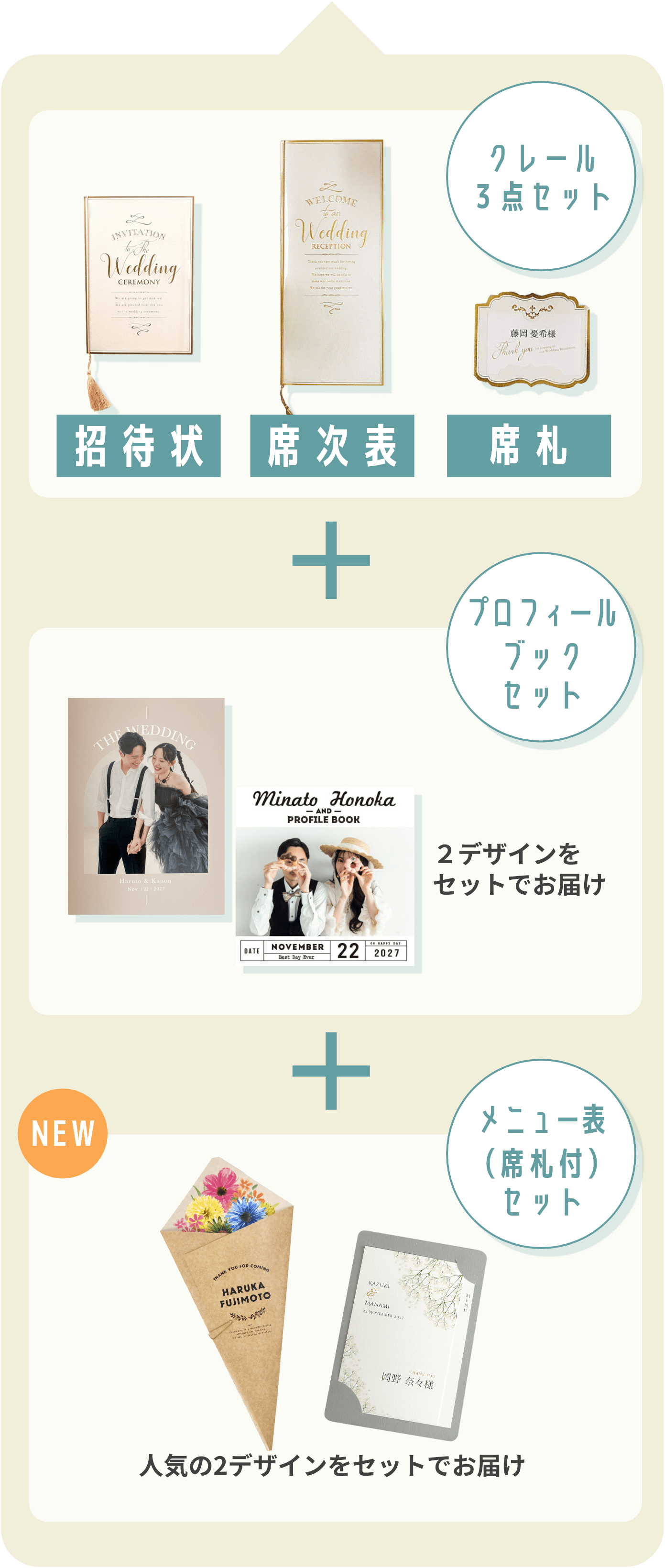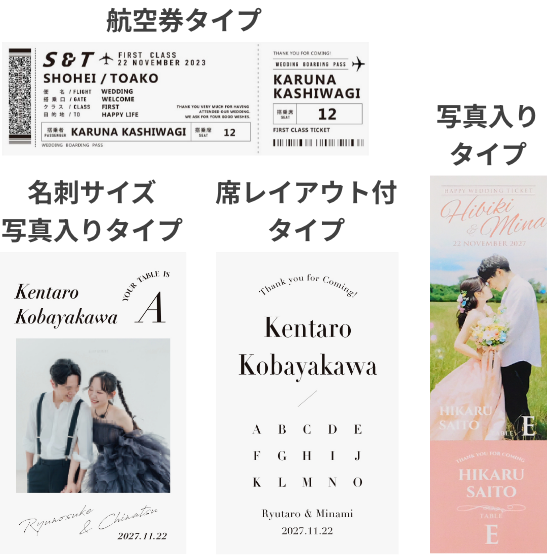 「招待状」「席次表」「席札」の