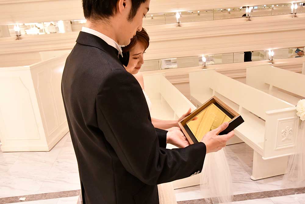 新郎新婦がサインする以外にも、参列してくれているゲスト全員から承認をもらう「ゲスト参加型タイプ」や、新郎新婦がお互いに違いを読み合う「VowBooksタイプ」など、演出自体も多岐にわたっています。