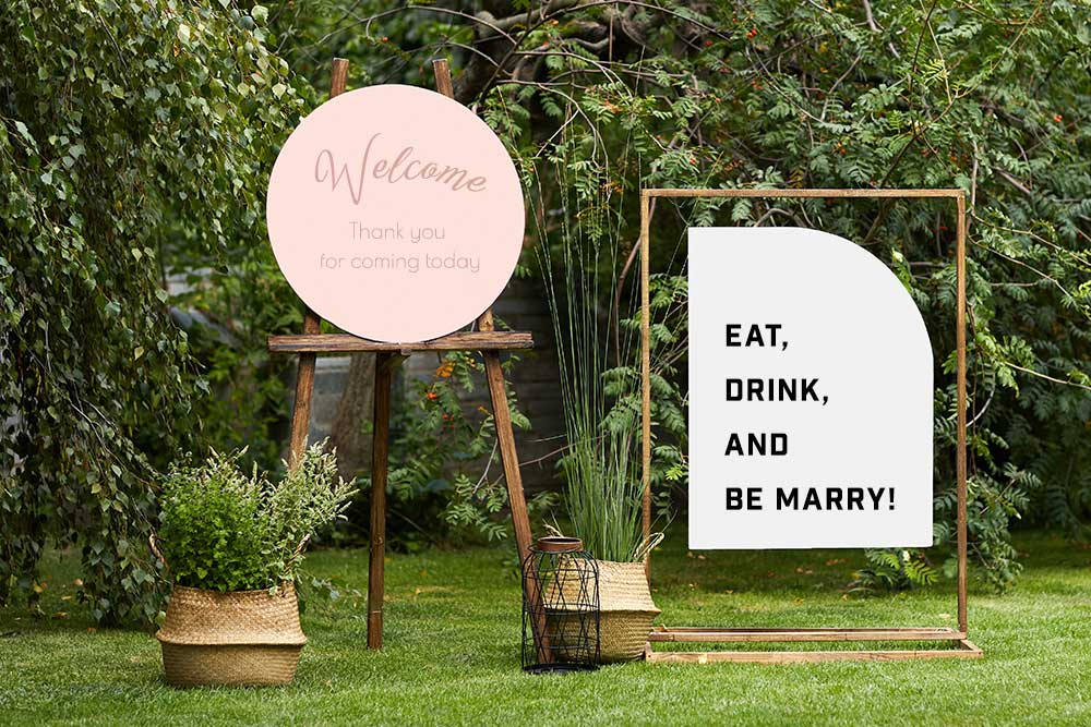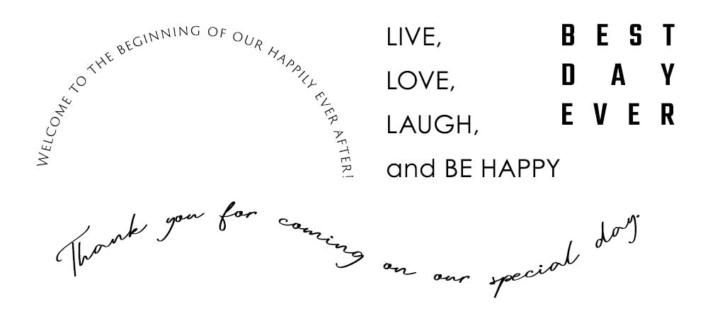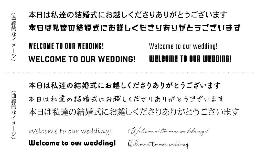 ウェディングアイテムを手作りする場合は、色々なパターンを試してみると思わぬ良いデザインが生まれることも♪選ぶフォントやレイアウト、フォントの太細次第でも、イメージがガラリと変わるので面白いですよ♪