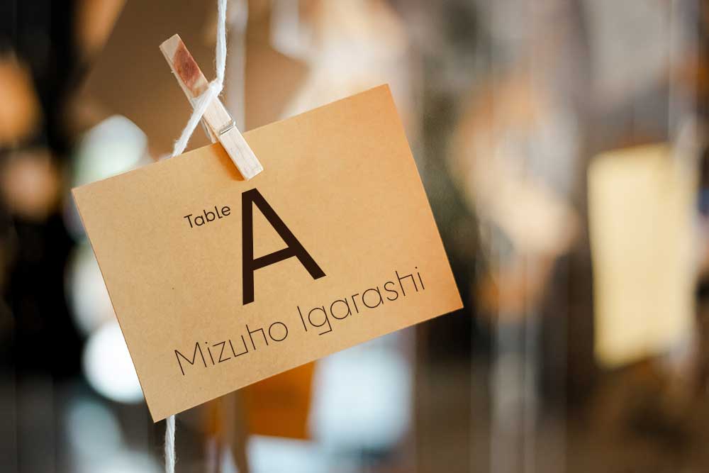 エスコートカードには、ゲストのお名前と着席するテーブルナンバーが記載されているので、ゲストはそのテーブルに向かえばOK。