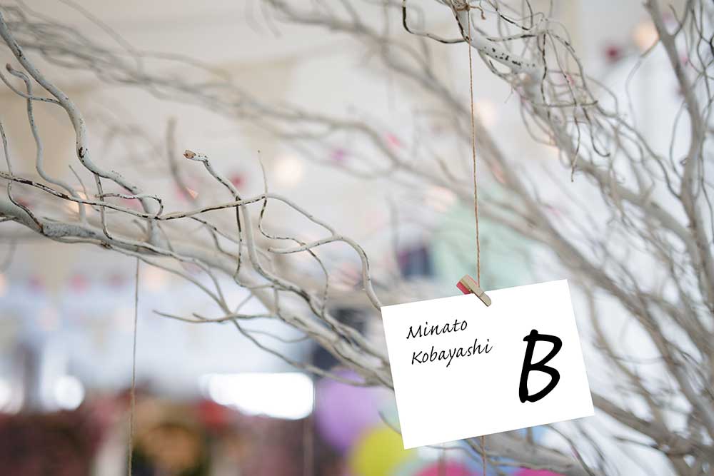 エスコートカード自体は、テーブルに並べておいたり、木製クリップで挟んで吊るしておいたり、ゲストが探しやすいようにしておくと親切です。