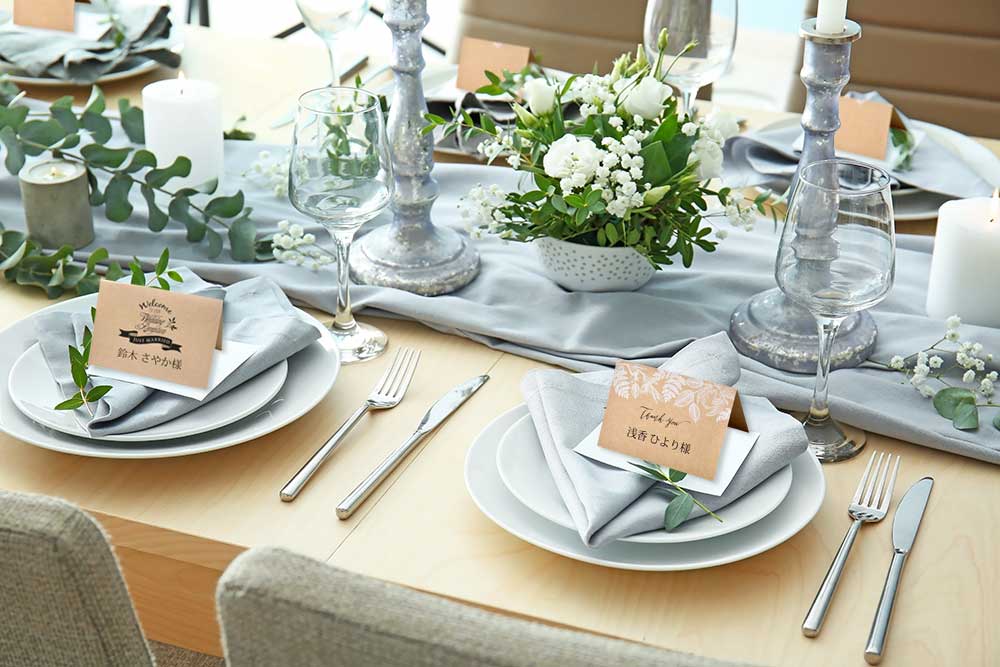 先に印刷だけは済ませておきたい…ということであれば、テーブル番号とゲスト名の部分だけ手書きやスタンプなどで対応するという方法も。