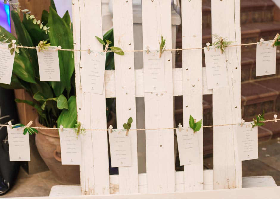 エスコートカードは、ウェルカムスペースを彩るおしゃれなアイテムとしても一役かってくれます。おしゃれに装飾したい方には、カードを吊るす方法もおすすめです。各カードにドライフラワーやグリーンをあしらえば、シンプルながらもおしゃれな演出ができるでしょう。