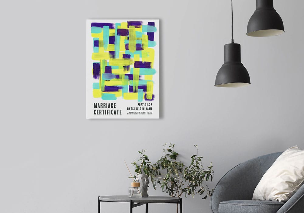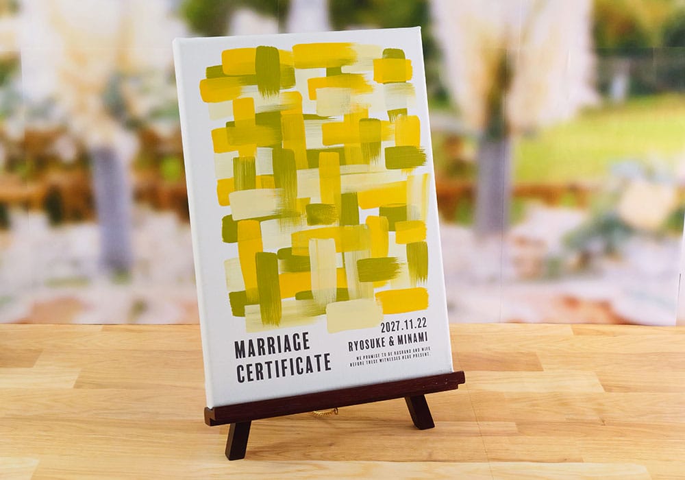 ゲストからの直筆メッセージを集めて完成させるウェルカムボードや結婚証明書も人気。ゲストからいただいたメッセージは、挙式後も大切な宝物になりますね。