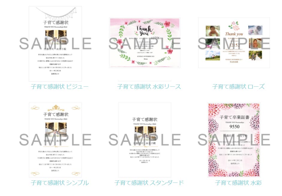 以上の2枚または3枚の写真を、子育て感謝状のデザインと上手に組み合わせて、素敵なものに仕上げましょう。
