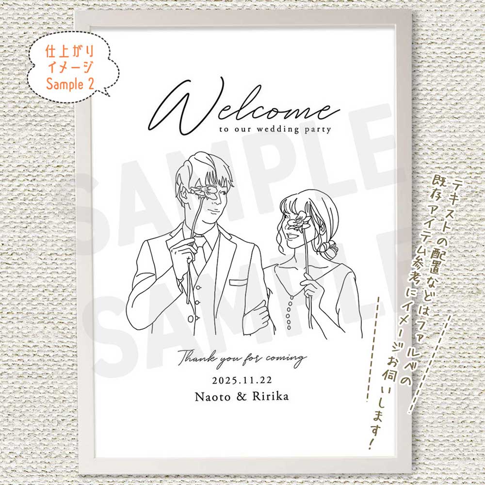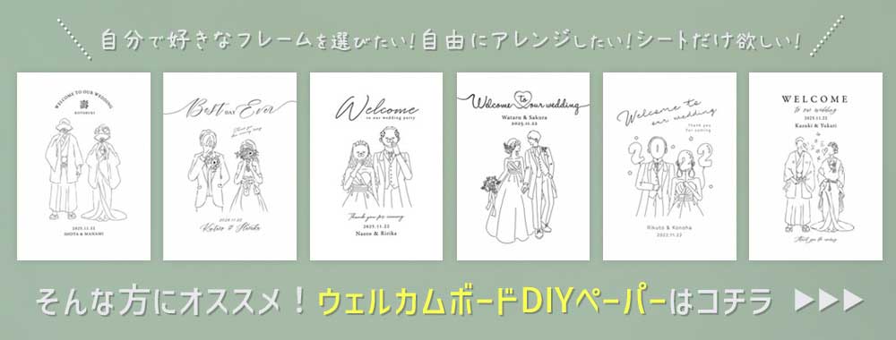 新郎新婦の線画イラストをウェルカムボードを飾っておけば、ゲストの皆さんは、お二人に出迎えられているような気持ちになってくれそうです。