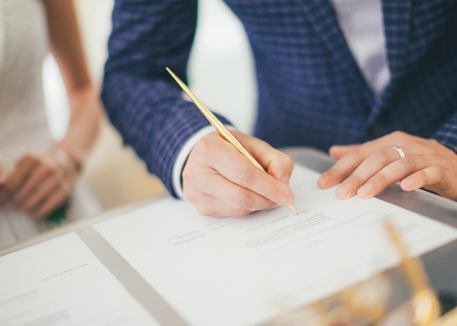 結婚式で定番の演出といえば、結婚証明書へのサインです。しかし、身内婚をはじめとした少人数での結婚式を挙げる際は、この演出をおこなうかどうか悩みますよね。今回は結婚証明書について、どのようなものなのか、さらに少人数でも必要かを紹介します。