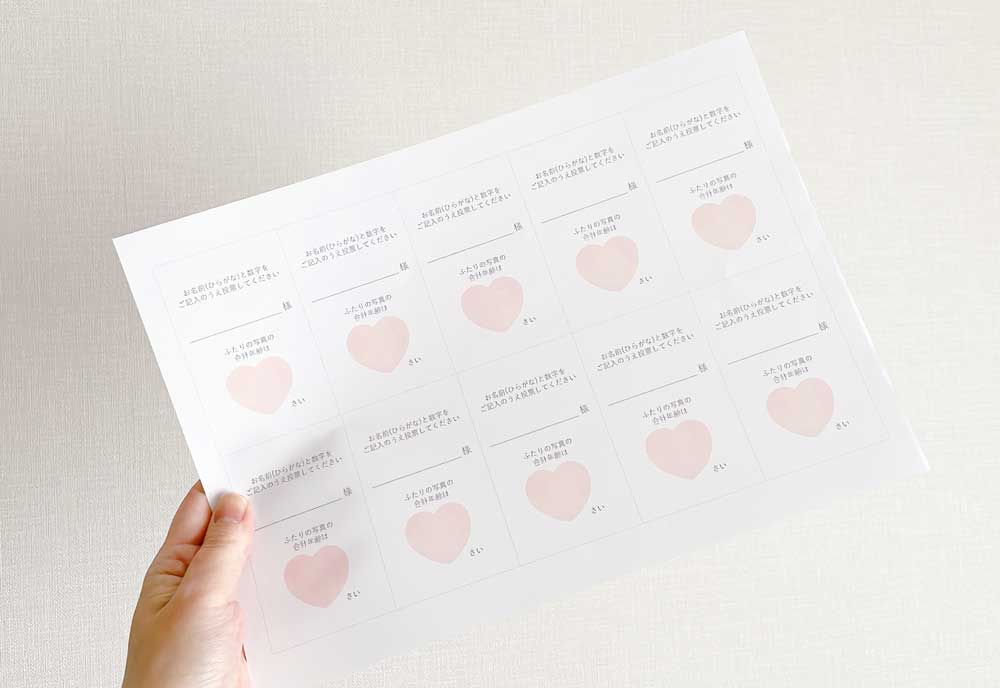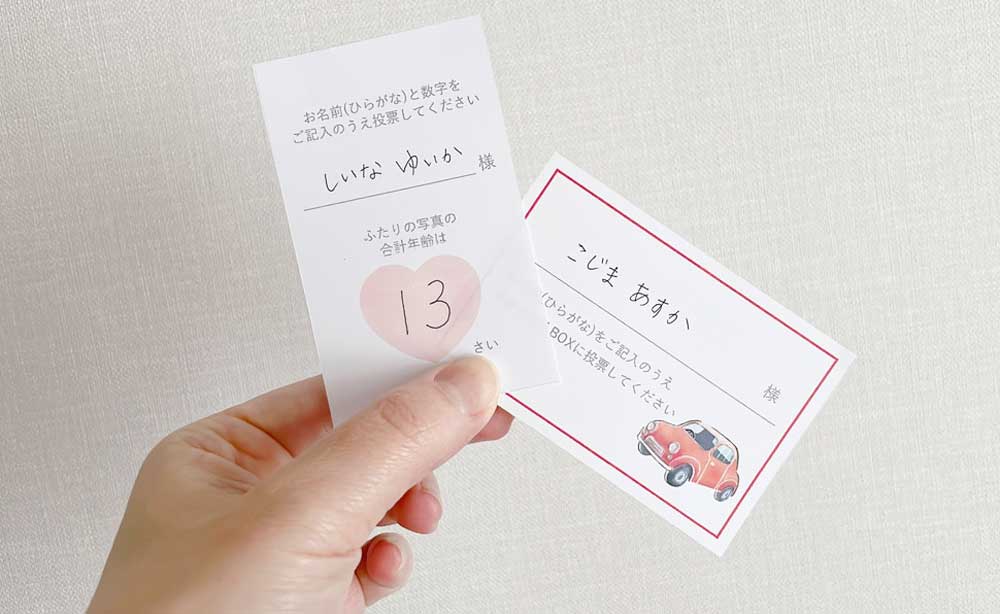 ゲストが受付を済ませた後に、その流れでこの投票をしてもらうケースが多いよう。やり方に迷われる方もいらっしゃるので、受付で説明してもらうようにお願いしておくと安心ですね。