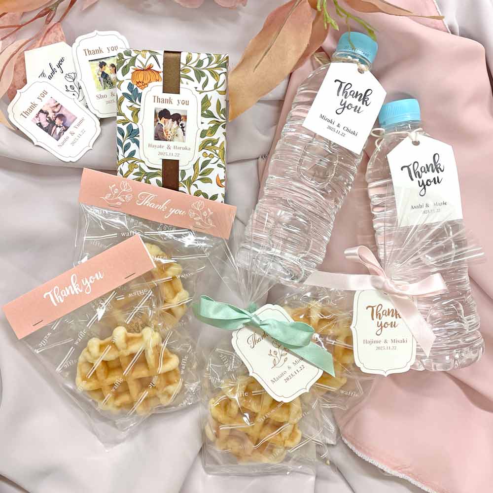 結婚式以外でも、お友達にちょっとしたお礼やお返し、ママ友同士のプチギフト交換、子供のお誕生日会イベントなどなど、いろいろなプチギフトのサンキュータグとしてもお使いいただけるので、是非色々なシーンでご活用ください!