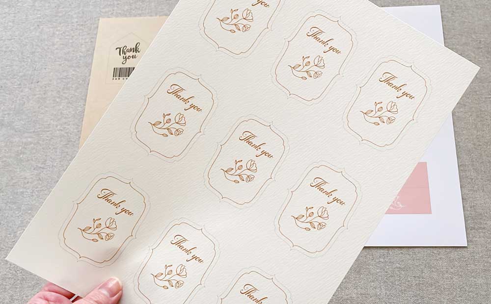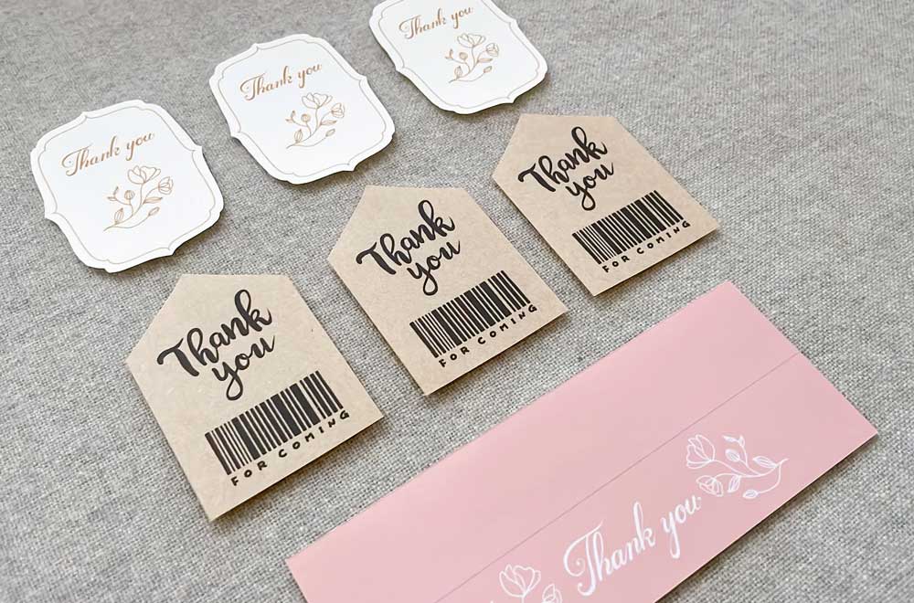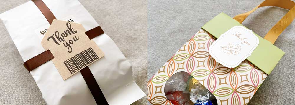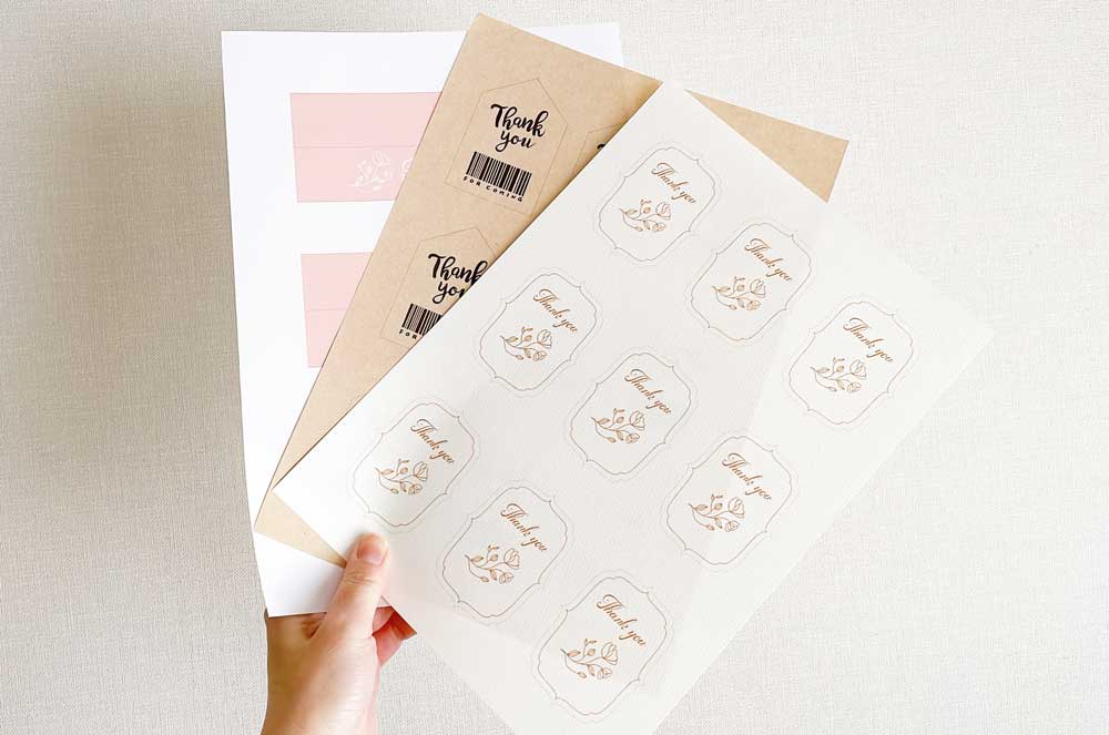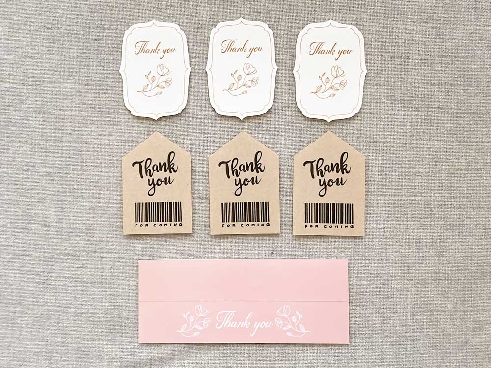 あまりペラペラな用紙がと見映えがしないので、ある程度厚みがある用紙や紙自体に質感があるタイプを使うのがオススメ!プチギフトラッピングのテイストに合わせて用紙を選ぶのも良いですね。