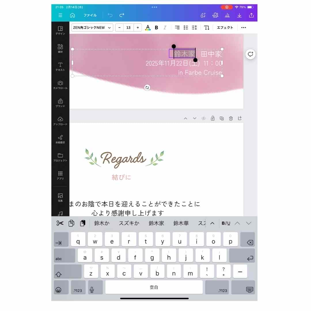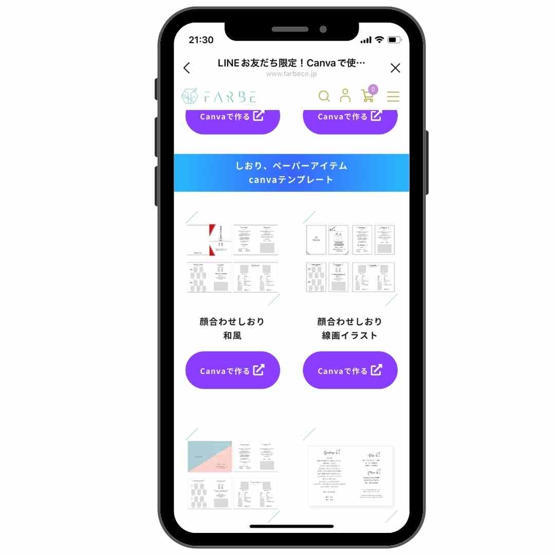 - まずは、ファルベの公式LINEを友だち追加してください。LINEのリッチメニューから「Canva無料テンプレート」をタップするとテンプレート一覧が表示されます。顔合わせしおりの他、結婚式に役立つテンプレートをたくさんご用意しています。