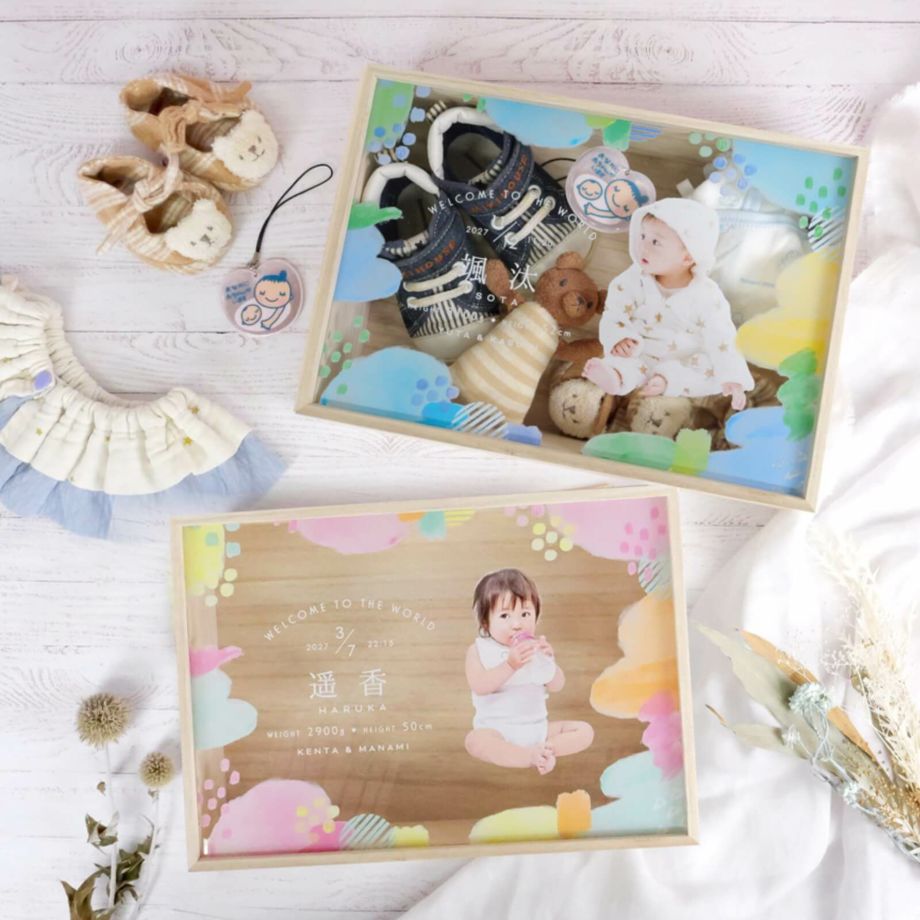 メモリアルボックスとはわが子の誕生の記録や洋服、へその緒、写真などをまとめて保管するための箱のこと。この生まれてきた赤ちゃんをおもう、愛情あふれるアイテムに命名書をプラス!生まれてきてくれてありがとう、の気持ちをまるごとこの箱に詰め込めます。