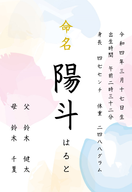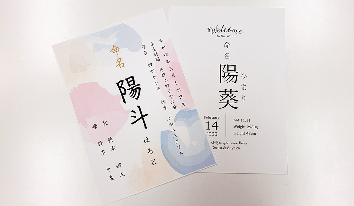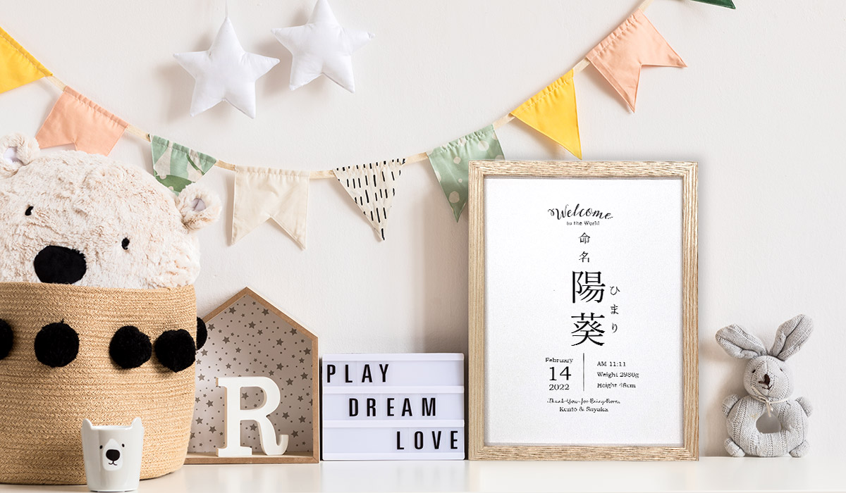 慌ただしい日々の中で命名書の準備を進めるのは大変ですよね。ですが、命名書は赤ちゃんへの初めてのプレゼントです。赤ちゃんの名前は一生に一度の贈り物。その名前に込めた想いを形として残せるのが命名書です。赤ちゃんが誕生した喜びの気持ちと愛をたっぷり詰め込んだ、世界にひとつだけのおしゃれな命名書を作ってくださいね。