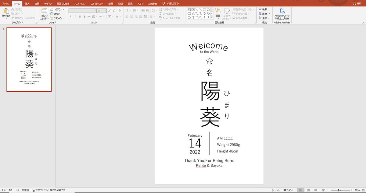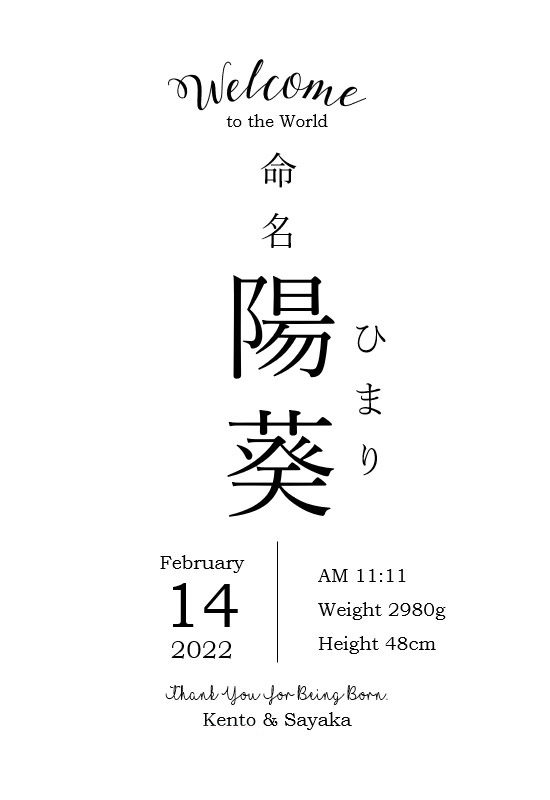 お子さまのお名前や出生年月日・時間、体重・身長などは無料テンプレートを使って作成していきましょう。