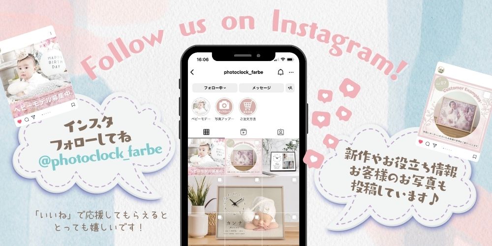 @photoclock_babyをフォローしていると、ベビーギフトの新商品やDIY無料テンプレート素材の新作などの情報をいち早くGETできます!オトクなプレゼントキャンペーンなども開催しているので、フォローがまだの方は是非!!