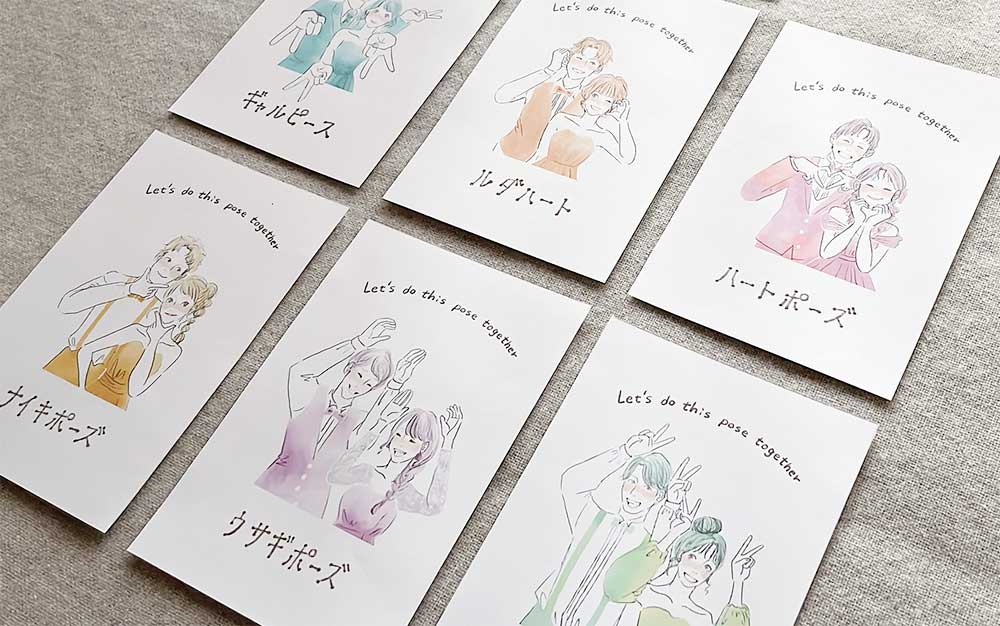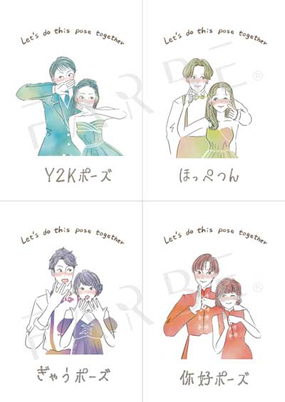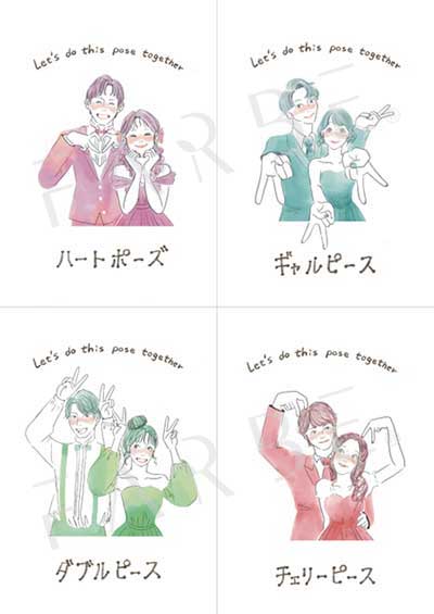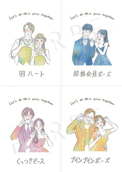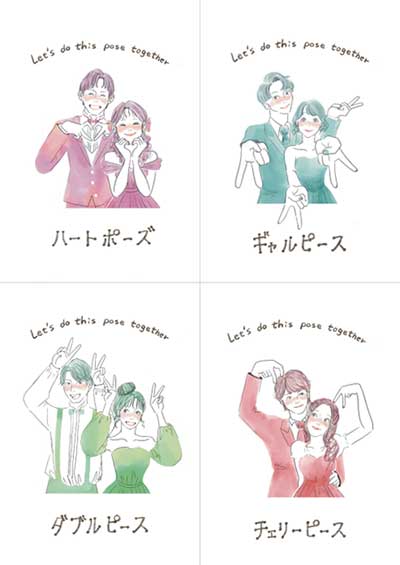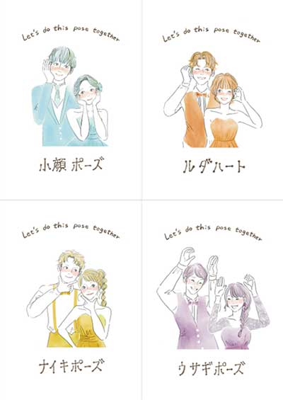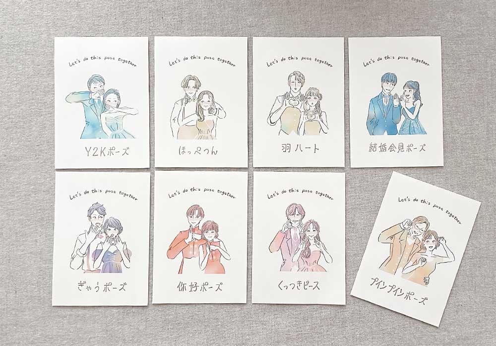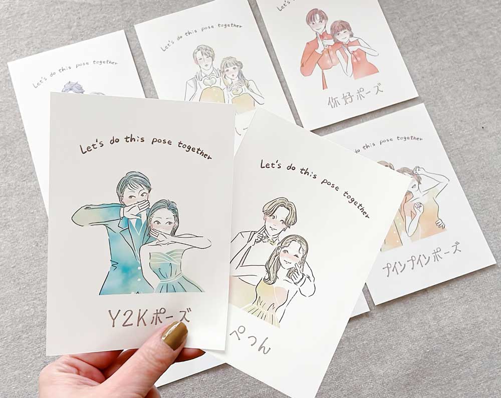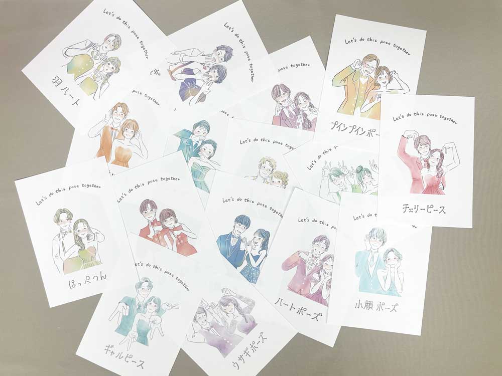 そんな時に頼りになるのが、多彩なポーズスタイルをカードにしたポーズカードです!せっかくの思い出写真、様々なキメポーズを提案できるポーズカードを使って、ハッピーな一日をより一層楽しく盛り上げましょう!