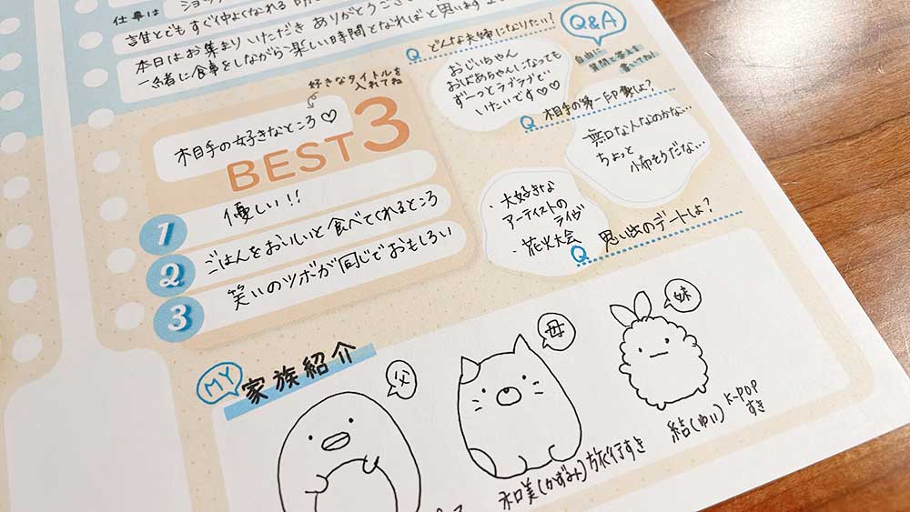 顔合わせ会しおりやプロフィールブックをプロフ帳風にするアイデア、いかがでしたか?少人数で実施する顔合わせ食事会や家族だけの少人数婚などで是非利用してみてくださいね!