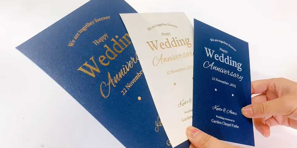 ファルベならカラー用紙も多数ご用意。また、金箔印刷や白印刷も可能だからワンランク上のリングボードができますよ。