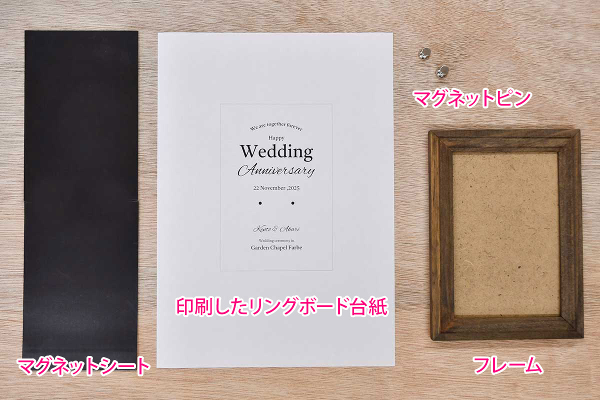 それでは、早速ファルベサイトからダウンロードできる無料のDIY素材で作れるボード型リングピローをご紹介していきます!
