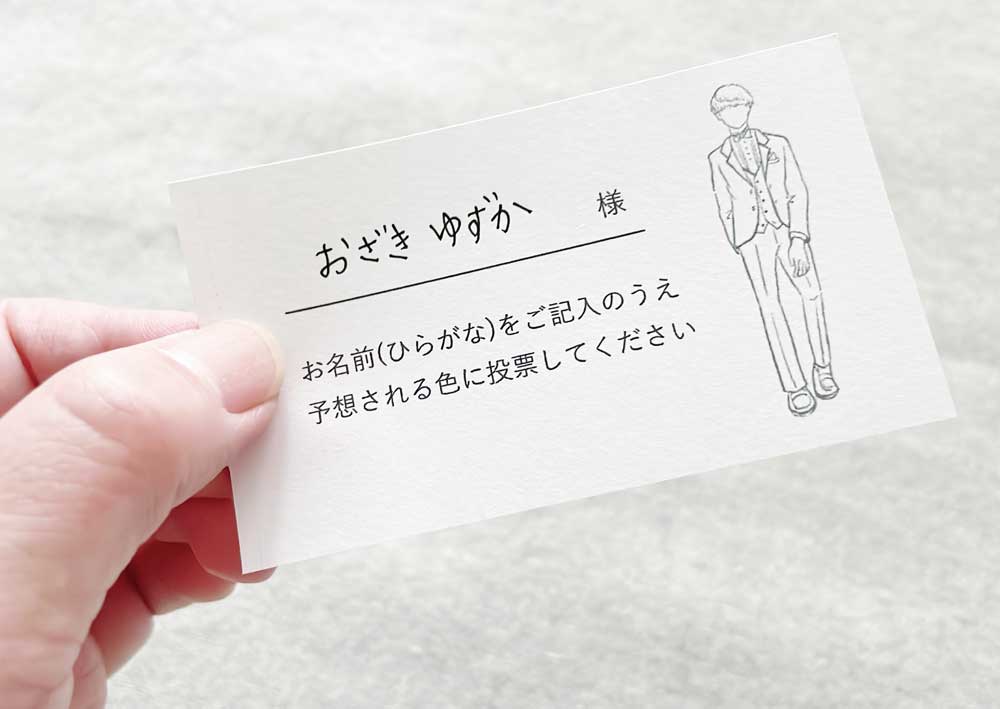 ゲストが受付を済ませた後に、その流れでこの投票をしてもらうケースが多いよう。やり方に迷われる方もいらっしゃるので、受付で説明してもらうようにお願いしておくと安心ですね。