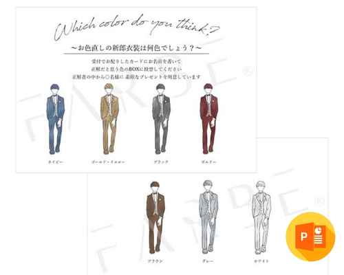 演出として取り入れてみたいけど、なるべく時短で準備したい!そんな方は、タキシード当てクイズ用のテンプレートを利用すれば、サクッと準備が済んじゃいます♪さっそくテンプレートを使ったDIY方法をチェックしましょう!