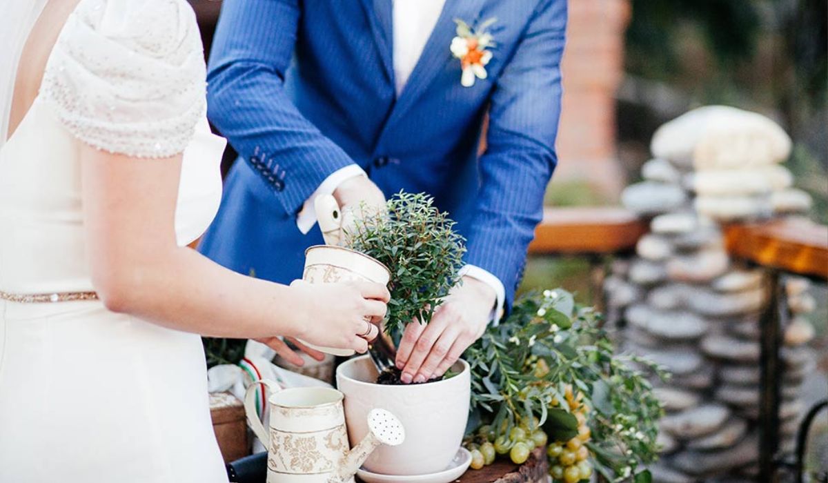 植物を入れた植木鉢に、ゲストに少しずつ土を入れていただいて、最後に新郎新婦が仕上げて水をあげます。