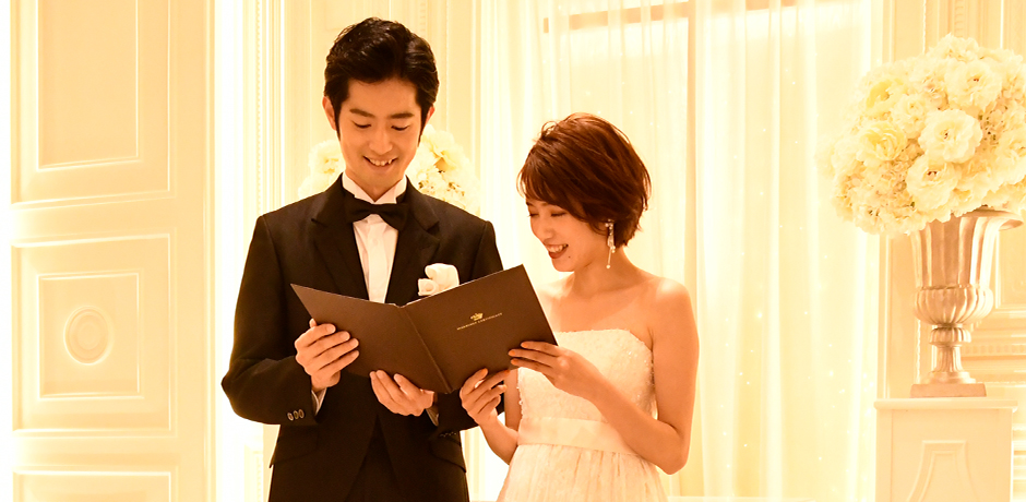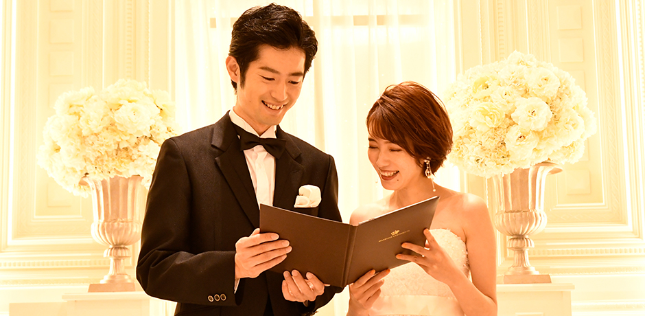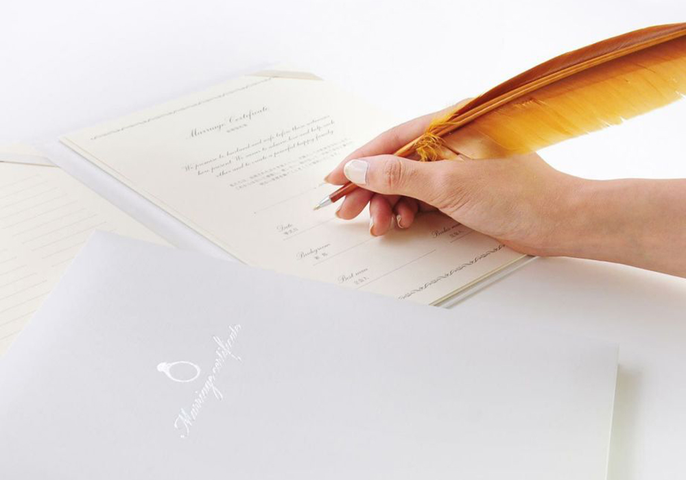 日本では婚姻届や戸籍謄本と違い、法的な役割はなく、挙式のスタイルによっては省略することもありますが、挙式の演出ボリュームやオリジナリティが出せる点、挙式後も記念として残るためメモリアルアイテムの役割を果たしてくれるという点から結婚証明書のサインを行うカップルが多くいらっしゃいます。