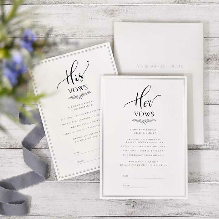 結婚証明書とは、新郎新婦が結婚の誓いをした証として、教会式や人前式でゲストの前でサインし、ふたりの永遠の愛を誓う演出アイテムです。
