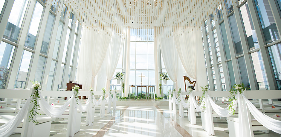 結婚式といえば、バージンロードを歩いて指輪の交換をして…というイメージを思い浮かべる方も多いのではないでしょうか?それを叶えることができるのが教会式(チャペル式)です。キリスト教の式次第に沿って教会で行われる挙式スタイルでは、おふたりが夫婦であることを司式者が神と列席したゲストへ宣言する結婚宣言が行われ、新郎新婦と立会人または司式者が結婚証明書へサインをします。