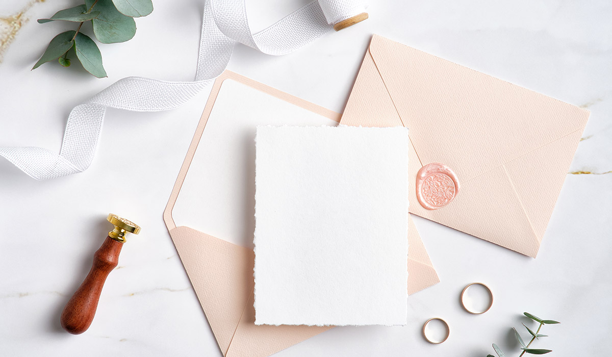 さらに招待状や返信ハガキに、前撮り写真を使ったオリジナル切手を貼ってもいいかも!近くの郵便局やオンラインで申し込みが可能な「オリジナル切手サービス」で作ることができますよ。切手の完成は注文から3週間程度かかるため余裕を持って注文しましょう。