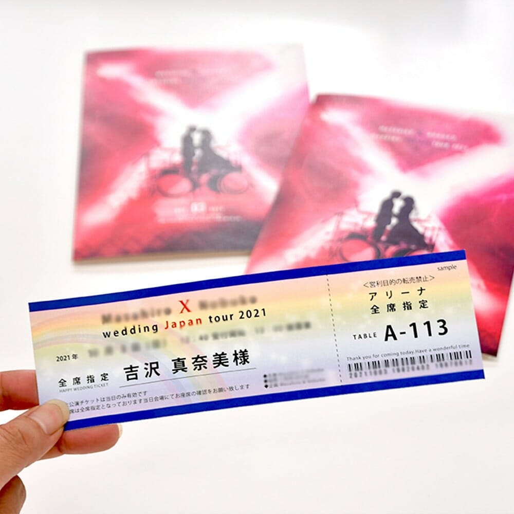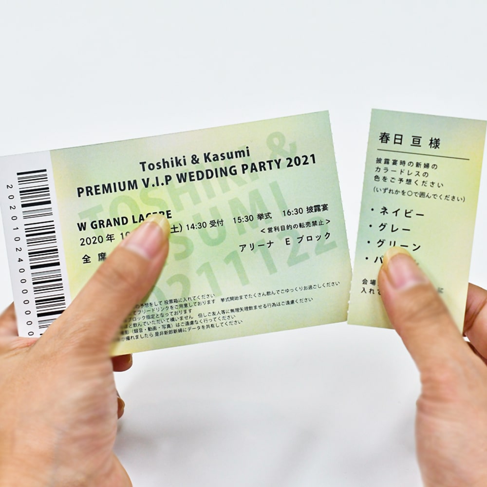 さらにチケットっぽさを演出するためチケットホルダーに入っていたり、ミシン目入りの半券付きのタイプも登場したりと楽しい仕掛けが充実しているのもポイント!ゲストの満足度が高いのも特長です。