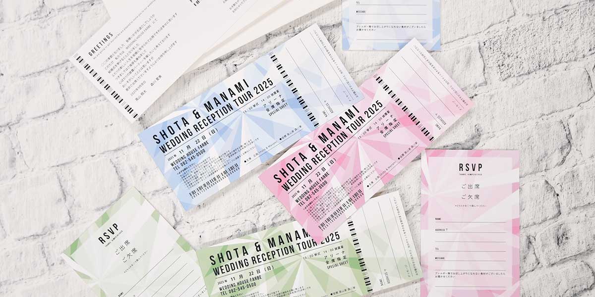 ある日、お客様より「結婚式へ参加するための入場チケットとして招待状をコンサートのチケット風にしたい」とオーダーメイドのご相談をいただきました。結婚式を当日限りの限定コンサートに見立てて、チケット招待状の制作スタート!