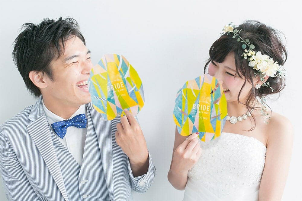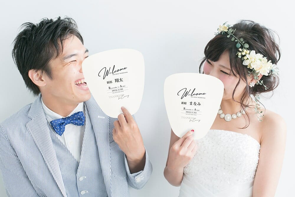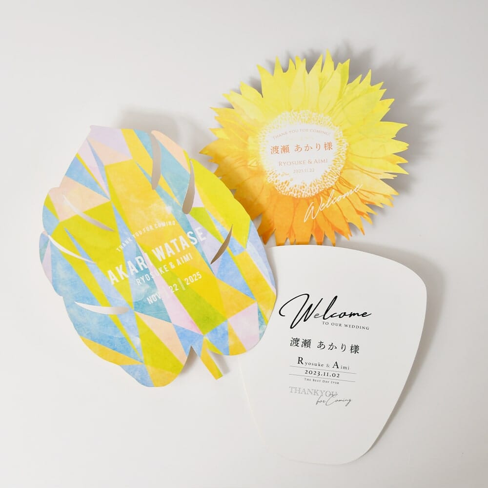 おふたりのお写真とお好みのデザインで披露宴会場をライブ空間に!ゲスト全員おそろいのうちわで一体感のある演出を叶えることができます♡
