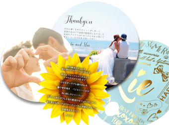 おふたりのお写真やプロフィールを入れることも可能です。席札の裏に入れる、など表×裏の組み合わせも自由自在!
