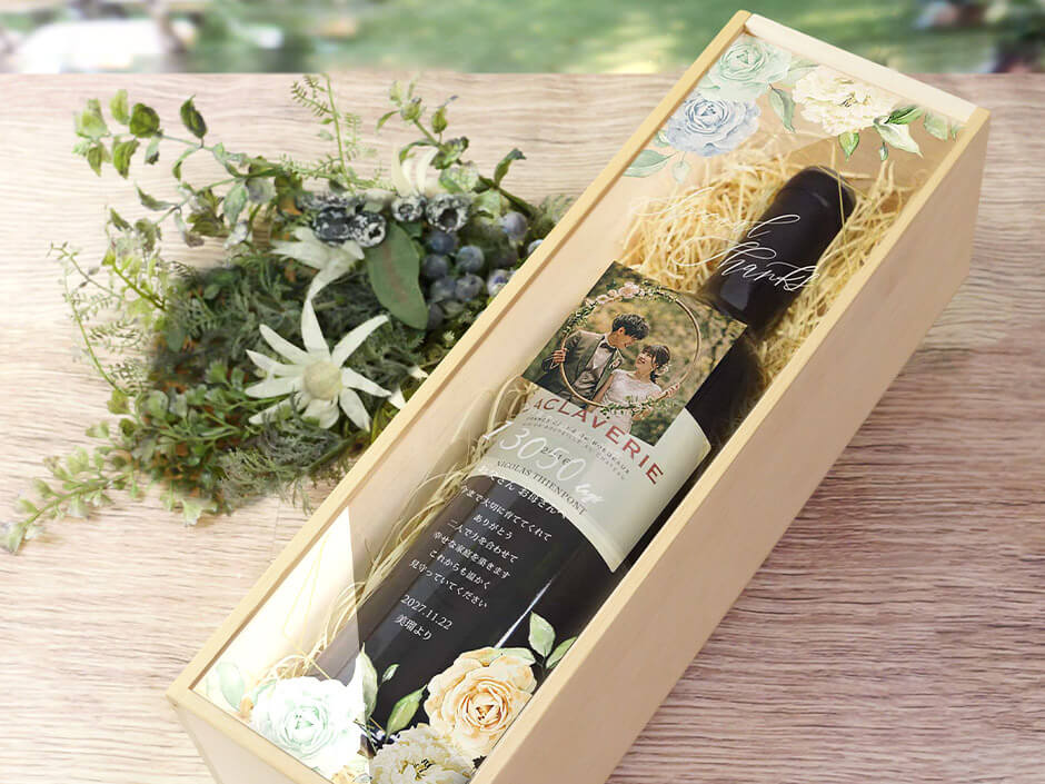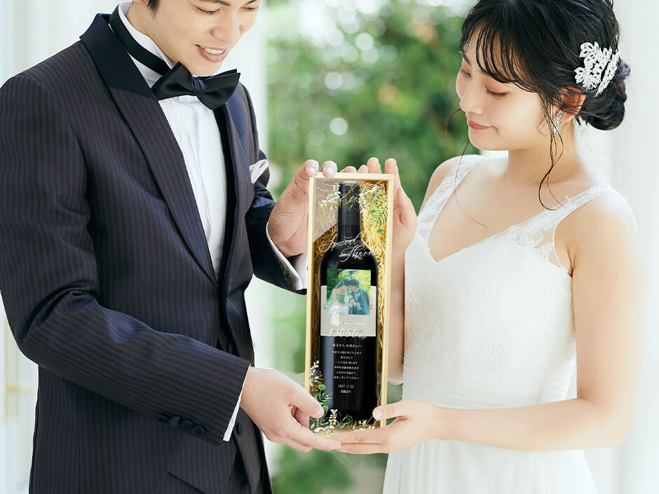 長期保存が可能なので、将来の特別な記念日やお祝いごとの日に「二人の結婚式のときの記念のワインを開けよう」と家族で楽しむこともできます。何を贈ろうか迷ったときは、ワインがおすすめです。