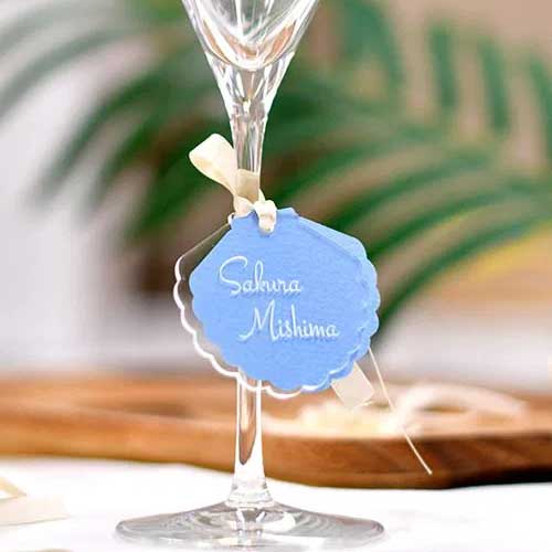 ゲストひとりひとりへメッセージへ席札メッセージを書きたいと思っている方も多いはず。紙なら、裏面や中面などに書けそうですが、紙以外の席札を検討中の場合、どうしたらいいの?