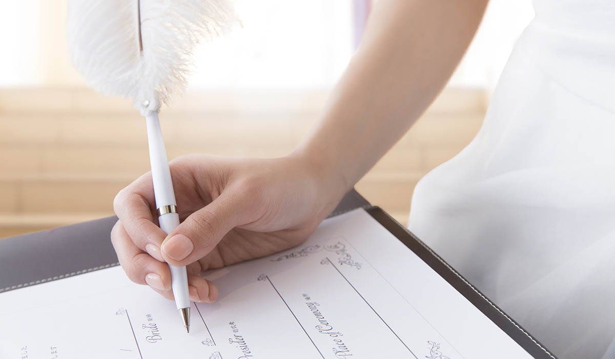 結婚証明書や誓約書のサインは、指輪の交換と並び結婚式のメインイベントです。工夫をしてより印象的な演出をしましょう。まだ入籍前の場合には、結婚式で実際の婚姻届にサインをするのも良い案です。ゲストに婚姻届の証人欄へサインをしてもらうことも可能です。