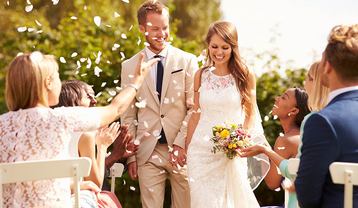 新郎新婦の退場も、演出の工夫をしてより盛り上げましょう。ゲストにアーチを作ってもらってその中をくぐるアイデアや、ゲストにリボンや花びらのシャワーをかけてもらうのも良いでしょう。
