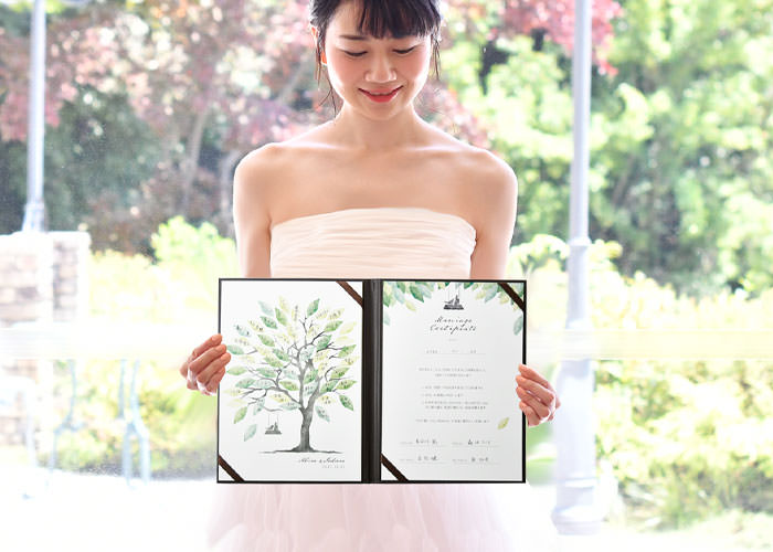 ゲストと一緒に作る「ウェディングツリー」も人気です。結婚証明書にゲストのスタンプが押してあるもので、色合い豊かな木のようになります。最後に新郎新婦がサインやスタンプを押せば、会場が一体感に包まれるでしょう。